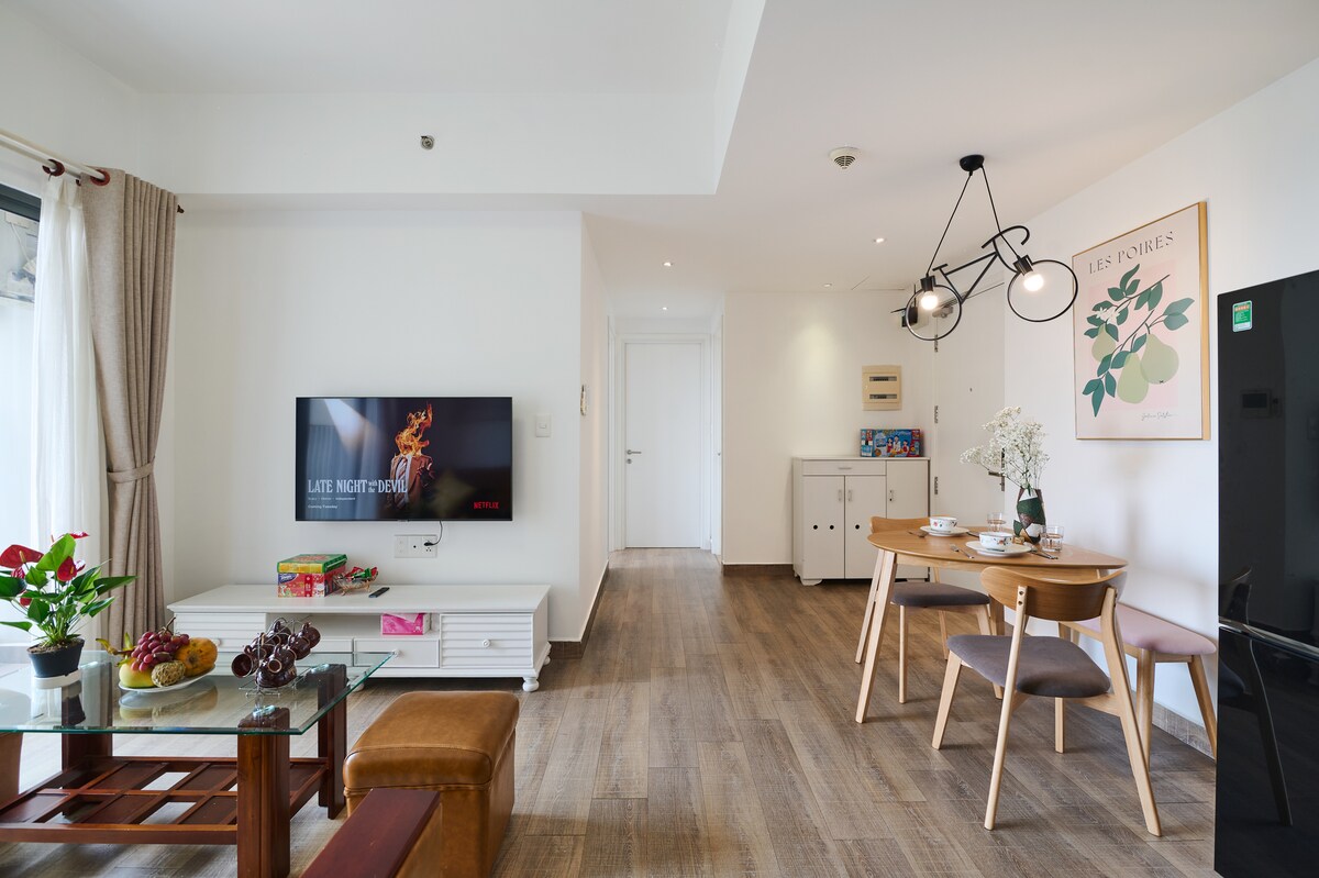 Willkommen in deinem Luxus-Aufenthalt direkt neben dem 1. Bezirk. 😊 Dies ist unsere moderne 2-Schlafzimmer, 2-Bad-Wohnung in Zenity Residence, District 1. Genieße den Blick auf die Stadt, einen privaten Balkon, eine voll ausgestattete Küche, einen Smart-TV und schnelles WLAN. Entspanne dich im atemberaubenden Infinity-Pool im Resort-Stil von Zenity und trainiere im luxuriösen Fitnessraum. Zu Fuß zum Ben Thanh Markt, Geschäften und Cafés. Perfekt für Paare, Familien oder Geschäftsreisen – stilvoll, sauber und mitten im Herzen von Saigon.
