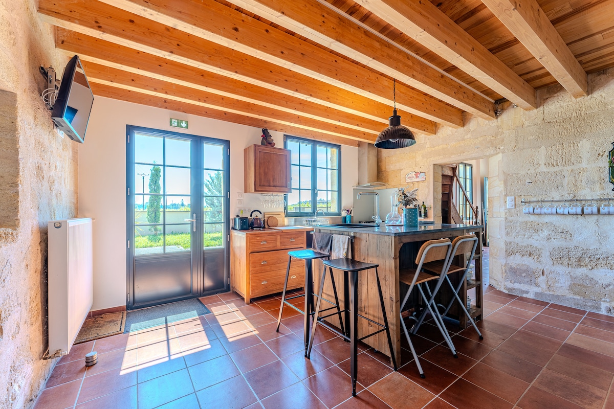Plongez au cœur du vignoble de Saint-Émilion (UNESCO) dans cette maison de vigneron rénovée pour 4 personnes. Profitez d'une vue imprenable sur les Grands Crus Classés depuis votre terrasse privée. Alliant charme de l'ancien et confort moderne, c'est le refuge idéal pour explorer la région. Parking privé gratuit, climatisation et Wi-Fi haut débit.