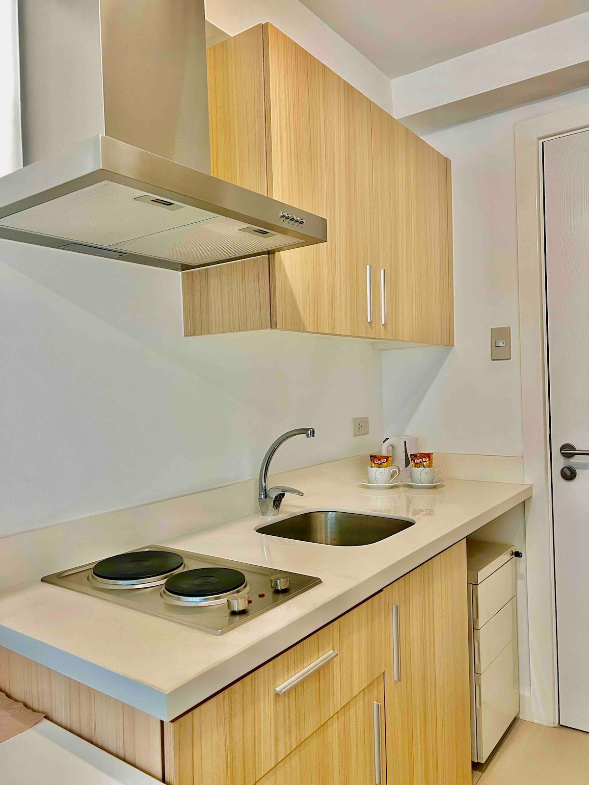 Situated on the 3rd floor of an apartment building, enjoy your stay here with your friends and dine outside the patio! What we have: -AC -Unlimited WIFI -Bingewatch all night as we have NETFLIX -Kitchen with single Induction stove + complete utensils -Refrigerator What we don't have: -Water heater -Projector (the one in the photo) is owned by the previous tenant -Parking area (but there's limited street parking for motors)