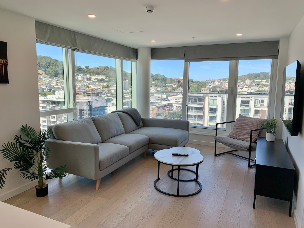 Imagine stepping into a modern well-appointed room in a new high quality Hyde Lane apartment, perched high above Wellington's vibrant city center. This thoughtfully designed space is part of architecturally strike Hyde Lane building. whether you're winding down after exploring the restaurants and bars on Courtney Place just steps outside or enjoying the building's wellness facilities like an in door pool, sauna, gym room , this feels like a peaceful city retreat. A Central City Lifestyle .