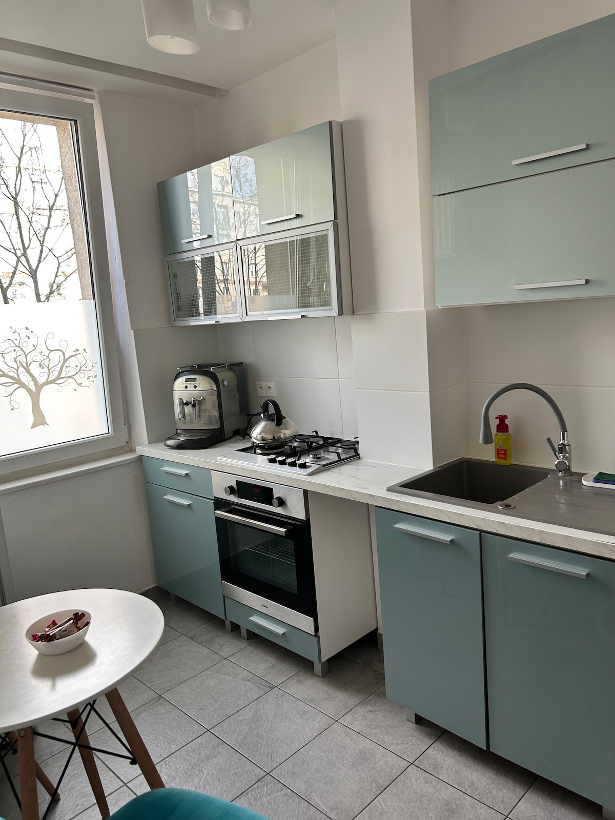 The beautiful, quiet 45m² GRIS apartment at Plac Unii Lubelskiej with lots of amenities for longer or short stays. Comfy bed, cozy bathroom, gourmet kitchen, a spacious living room, AC in summer, and fast WiFi make it the perfect solution for business or leisure travelers seeking the comfort of a good hotel, yet independence. Excellent connections to the city center and the Old Town, close to the metro, restaurants, pubs, cafes, and a shopping mall, and just a short walk to Rotal Łazienki Park.