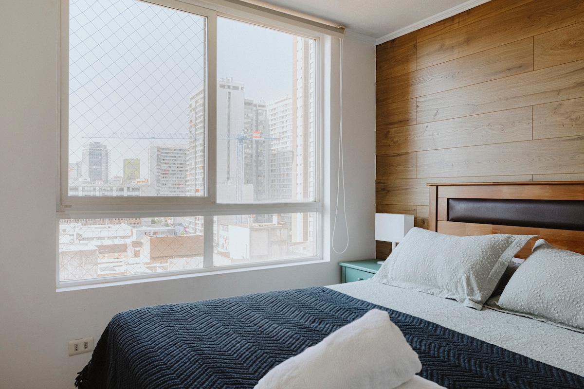 Entdecke das historische Zentrum von Santiago von einer komfortablen und zentral gelegenen Wohnung aus. Erkunden Sie zu Fuß den La Moneda Palast, die Plaza de Armas, den Paseo Ahumada und die wichtigsten Museen. Und nur 2 Blocks entfernt hast du die Metro, um andere Gegenden zu erreichen. Wir haben High-Speed-WLAN und das Gebäude verfügt über einen Fitnessraum und eine Wäscherei. Im Sommer öffnet der Pool auf der Dachterrasse mit einer unglaublichen Aussicht. Die Nachbarschaft ist lebendig und voller kleiner Geschäfte, Cafés und Supermärkte. Alles zu Fuß erreichbar. Wir freuen uns darauf, dich kennenzulernen!