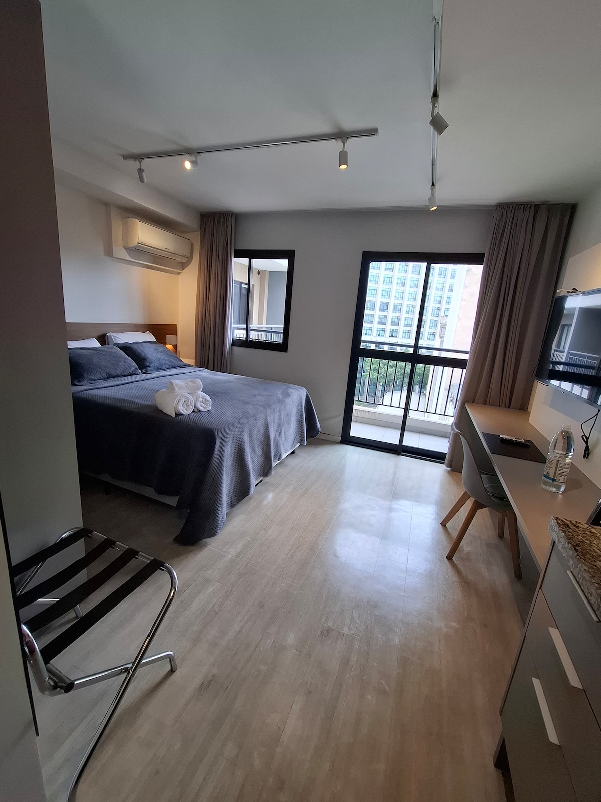 Das Studio ist nagelneu, gut eingerichtet und mit hochwertigen Produkten ausgestattet, die Komfort und Gemütlichkeit für deinen Aufenthalt bieten. Das Gebäude befindet sich im Zentrum von São Paulo, im Viertel Bela Vista, bekannt für seine Pasta-Restaurants und die gute Anbindung an die wichtigsten Touristenattraktionen, Verkehrsmittel und Veranstaltungszentren der Stadt. Das Gebäude ist ein Wohnhaus mit 24-Stunden-Sicherheitsdienst, Parkplätzen und einem Aufzug. Wir haben mehr Studios in diesem Gebäude, falls du mit deiner Familie kommst!