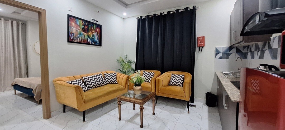 Gemütliche 1-BHK-Wohnung in Gulberg Greens, Islamabad Übernachte in unserer ruhigen 1-BHK-Wohnung am Main Expressway in Gulberg Greens, ideal für Alleinreisende, Paare oder kleine Familien. Die Wohnung befindet sich in einer ruhigen und sicheren Nachbarschaft, in der Nähe von Top-Restaurants, Cafés und Geschäften. Genieße moderne Annehmlichkeiten wie eine voll ausgestattete Küche, Highspeed-WLAN und einen komfortablen Wohnbereich. Mit einfachem Zugang zu den wichtigsten Sehenswürdigkeiten ist es perfekt für kurze und längere Aufenthalte.