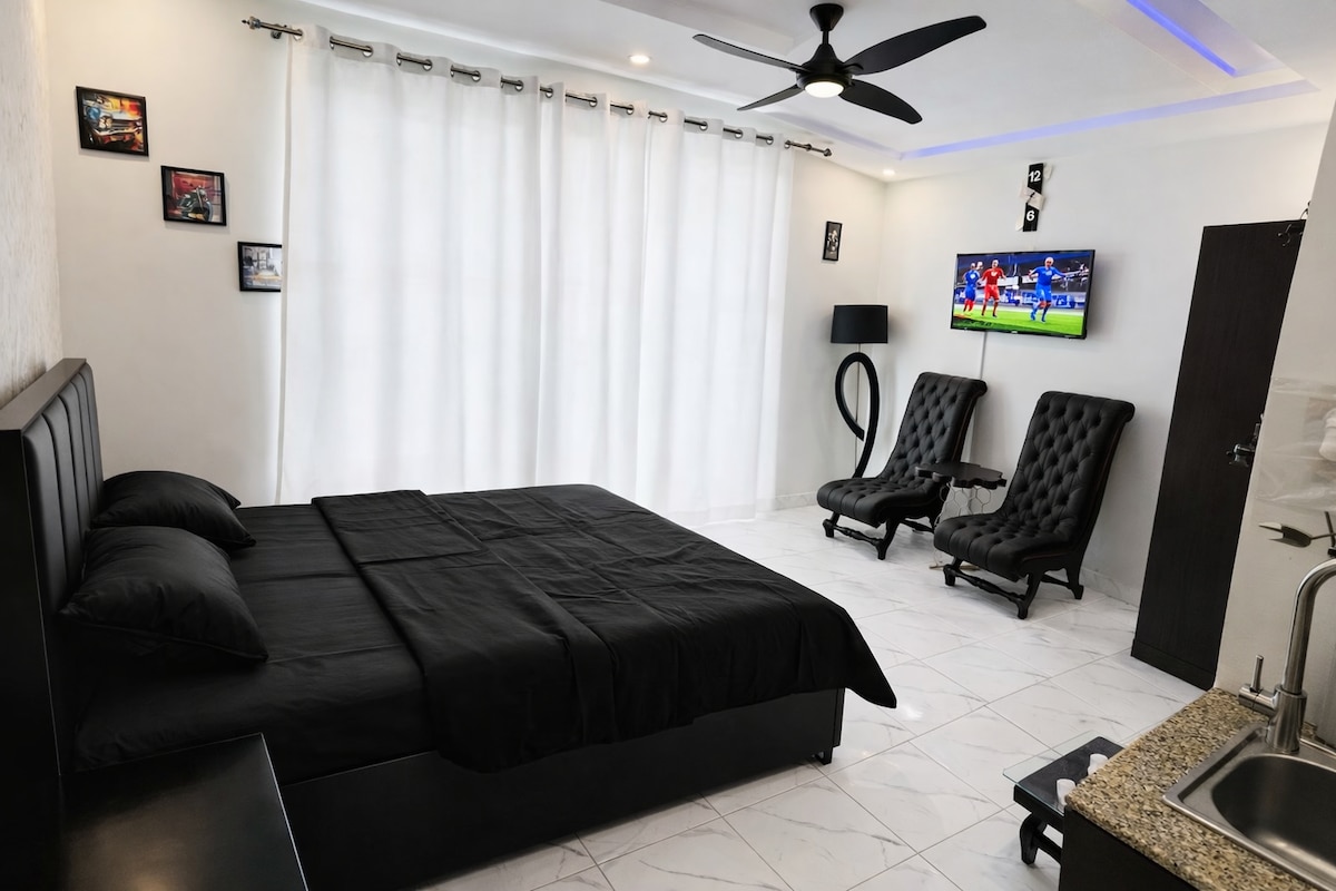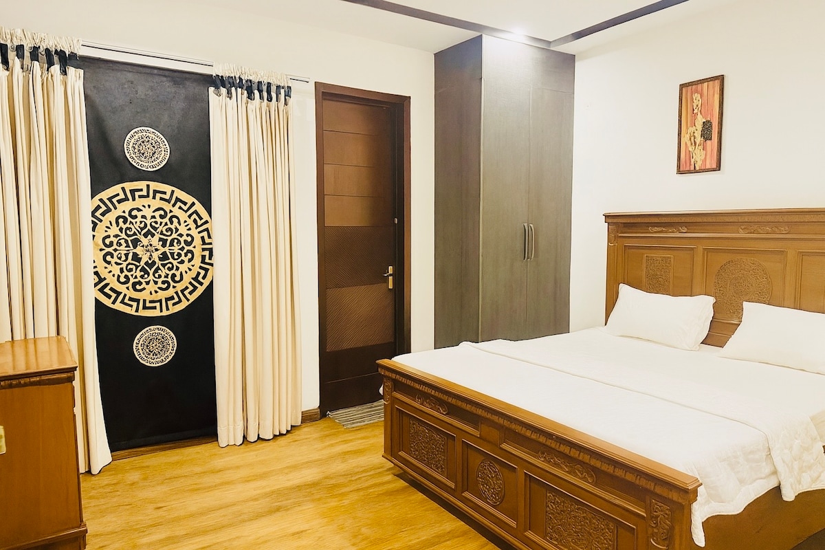 Welcome to your cozy home away from home in the heart of islamabad This modern one-bedroom apartment is designed for comfort, relaxation, and convenience — perfect for solo travelers, couples, or business guests. A serene bedroom with a plush queen-sized bed, fresh linens, and ample storage.Bright and spacious living room with comfortable seating and smart TV. Peaceful location in Gulberg Greens with easy access to main roads.