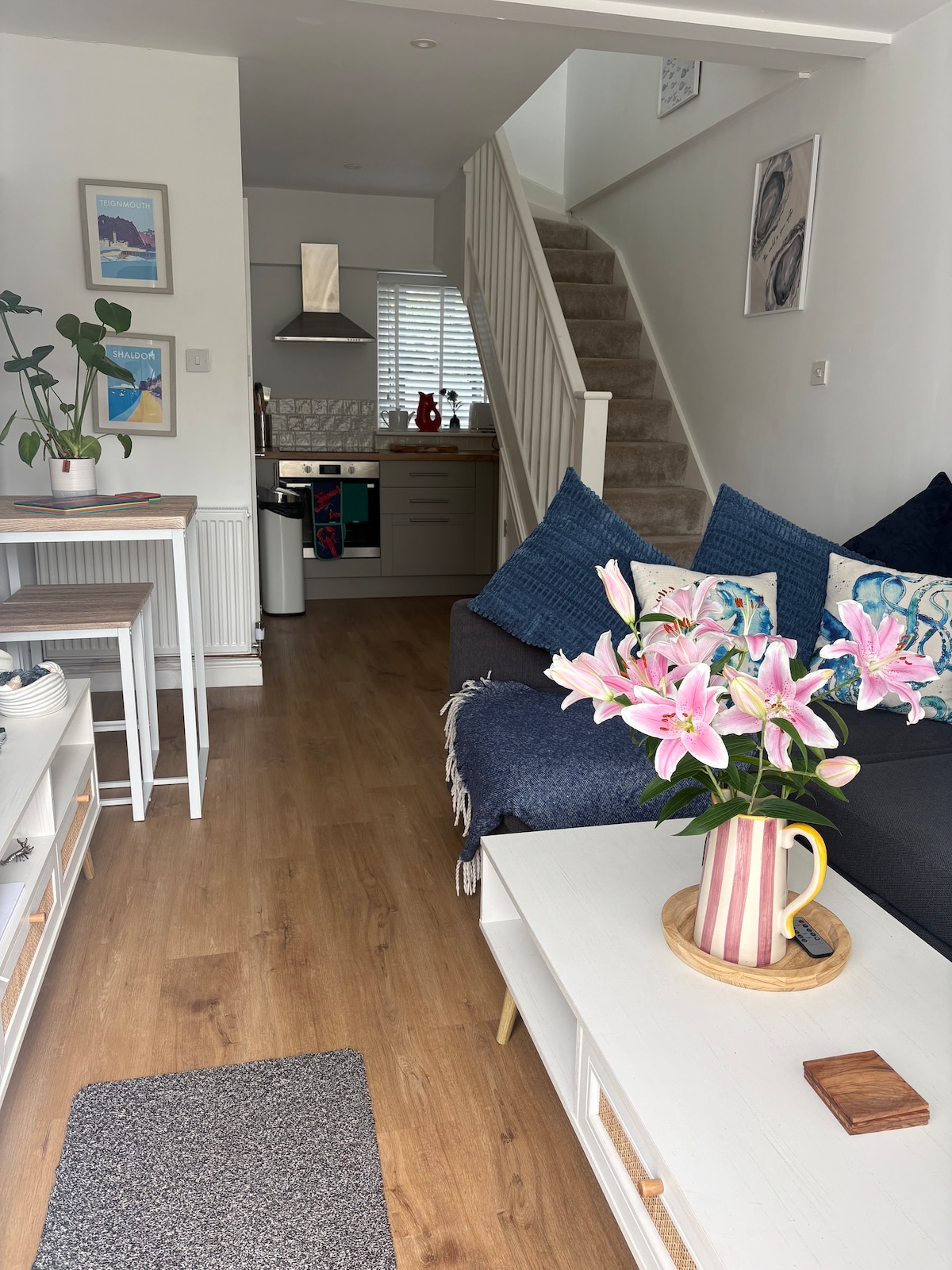 Have fun with friends or family at this stylish cottage. You can enjoy a fully equipped, open plan kitchen/ dining area and a relaxing sitting room with internet TV. Enjoy pretty bathrooms and comfy beds upstairs. 150 steps to the sea and smack bang in the middle of the lovely town of Teignmouth with good restaurants, pubs, bakeries and an arcade for the kids. Teignmouth boasts 2 beaches (a sea beach and a river beach) and is a short ferry ride to Shaldon and it's pretty town and beaches.