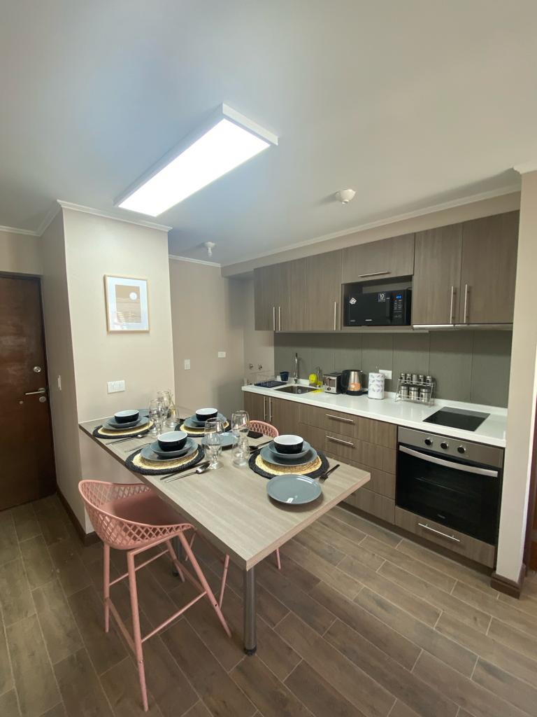 Brandneues Studio-Apartment für zwei Personen in Isla Teja -Valdivia. Private Eigentumswohnung mit 24-Stunden-Überwachung. Es besteht aus Wäscherei, CoWork-Räumen, Fahrradständern. Das Hotel liegt in der Nähe von Parks, verbleibenden und herausragendsten Bars der Stadt, nur wenige Schritte von Costanera, Parque Saval, Casino Dreams und Feria Fluvial entfernt. Sie besteht aus voll ausgestatteter Küche, Granitküche mit Backofen, Dunstabzugshaube und Cerankochfeld. Kostenloser Privatparkplatz inklusive.