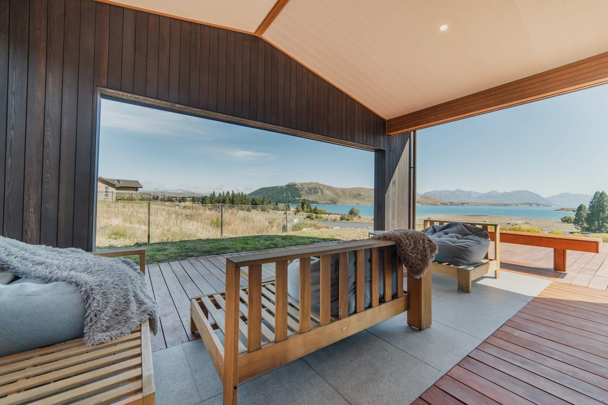 Genieße den atemberaubenden Blick auf die Berge und den See von einer neuen modernen Villa im Tekaposee aus. Das Haus ist eine von zwei Villen auf einem großen Grundstück und ist privat und friedlich. • Große Fenster und Balkon, um den Blick auf die Berge und Sterne zu maximieren • Komplett ausgestattete Küche mit Gasherd • Übergroßer Smart TV mit Netflix & Neon • Waschmaschine & Trockner vor Ort • Ausreichend Parkplätze vor Ort • Viele Grünflächen - Drei Minuten zu Fuß zu Cafés, Restaurants, Bars - Fünf Minuten zu Fuß zum See und zur Kirche