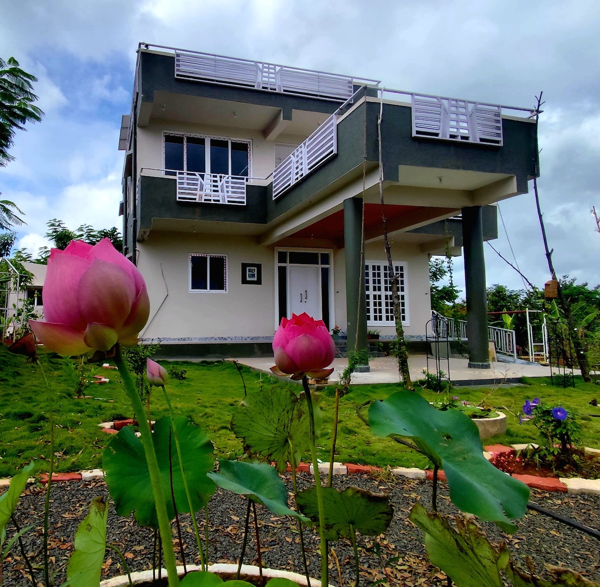 A lovely farmhouse @97ooo65552 located around 35-40km from the city with a modern house with ample space to help you have a completely safe, quiet, and relaxing stay. The house is surrounded by a landscaped garden with several seating areas, view of farm animals, several fruit and vegetable plantations, and a beautiful natural fish pond that makes this house the place to be. Guests have the whole farmhouse to themselves including parking space and kids play area. close to nature NO HOST STAYING