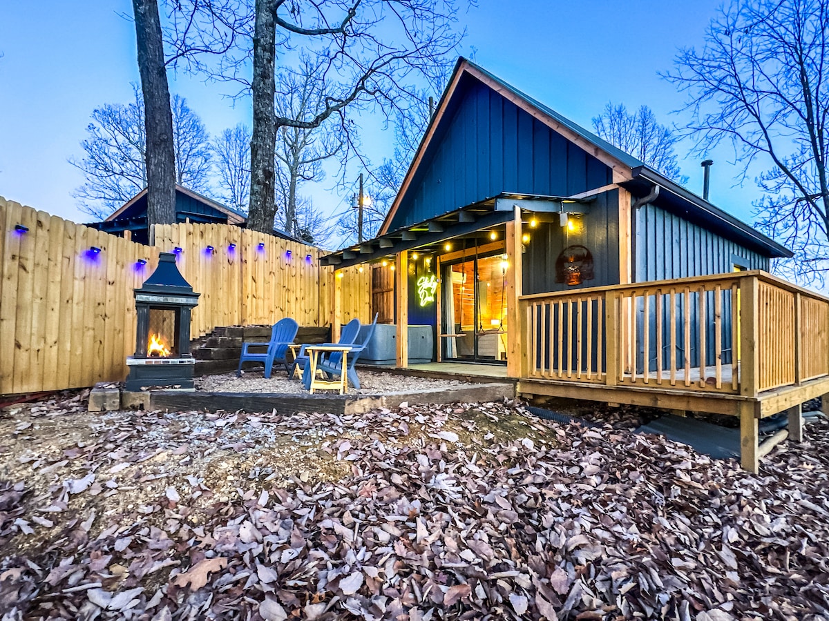 „The Steely Dan“ – eine winzige Hütte mit riesigen Annehmlichkeiten und modernem Flair im Herzen von Pigeon Forge, 5 Minuten zum Parkway/7 zur „Insel“. Gelegen im winzigen Hüttendorf „The Summit at Ridge Top“, das aus 5 anderen winzigen Hütten mit Privatsphäre besteht, die in jede Hütte eingebaut sind. RIESIGE AUSSICHT auf den Mount Leconte vor der Tür. Privates KINOTHEATER. Feuerstelle. WHIRLPOOL und Schaukeln unter einer überdachten Veranda. 1 Schlafzimmer/1,5 Bäder. Essen in voll ausgestatteter Küche mit Frühstücksbar/Arbeitsbereich. Kamin. Bequem. Stilvoll. Modern. Gemütlich. 5–10 Minuten zu allem.