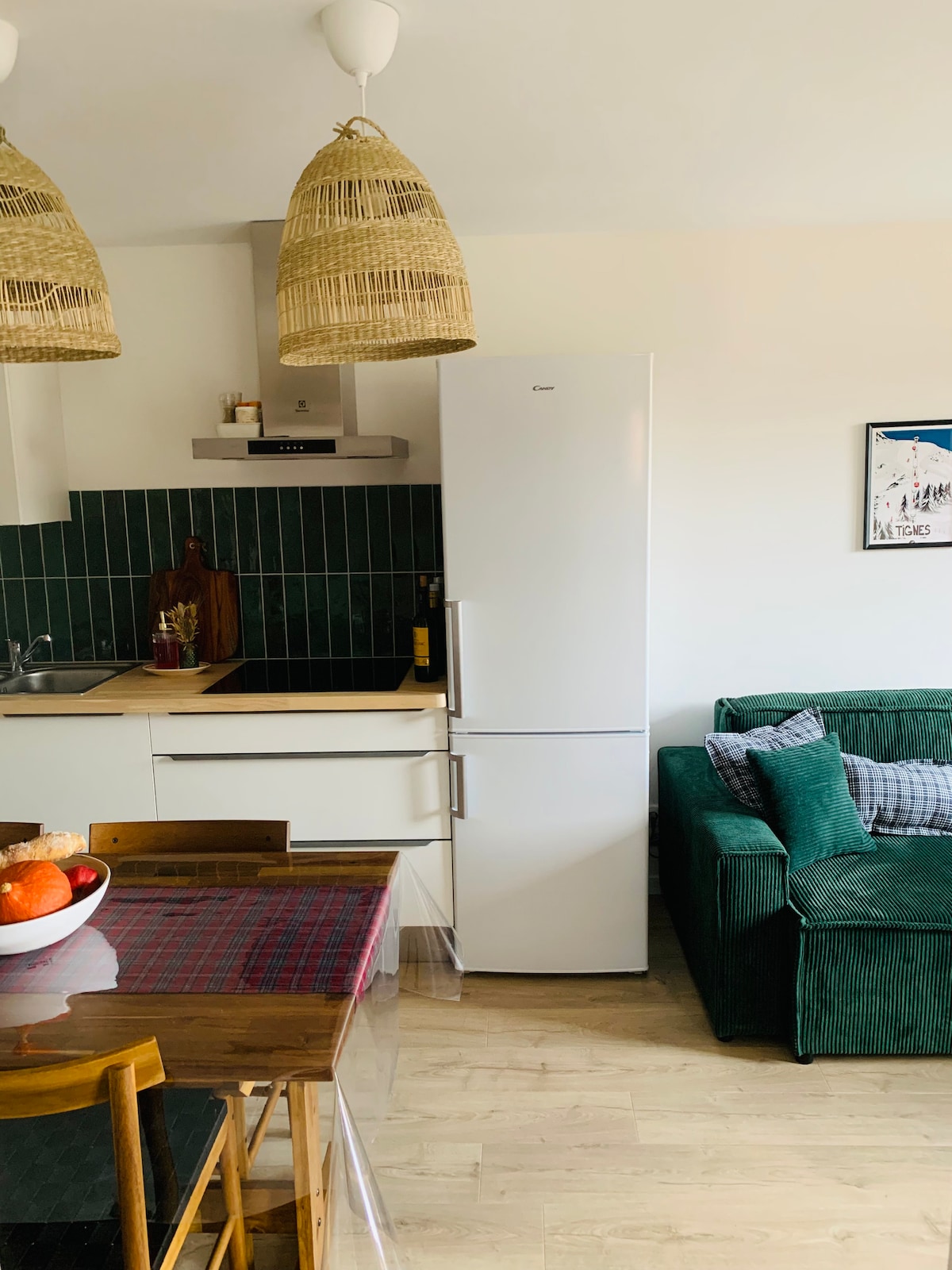 Wunderschöne High-End-Wohnung, komplett renoviert, im Zentrum von Val d'Isère, nach Süden ausgerichtet mit freiem Blick auf die Solaise und Bellevarde. Sie besteht aus einem Hauptschlafzimmer, einem Zimmer 1 Einzelbett und 2 Etagenbetten, einem Badezimmer und einem Wohnzimmer mit voll ausgestatteter offener Küche. Der Zugang zur Piste ist 900 Fuß oder 1 Shuttle-Haltestelle (am Fuße des Gebäudes). Er ist mit einem Skischrank mit Schuhtrockner und Wärmer ausgestattet.