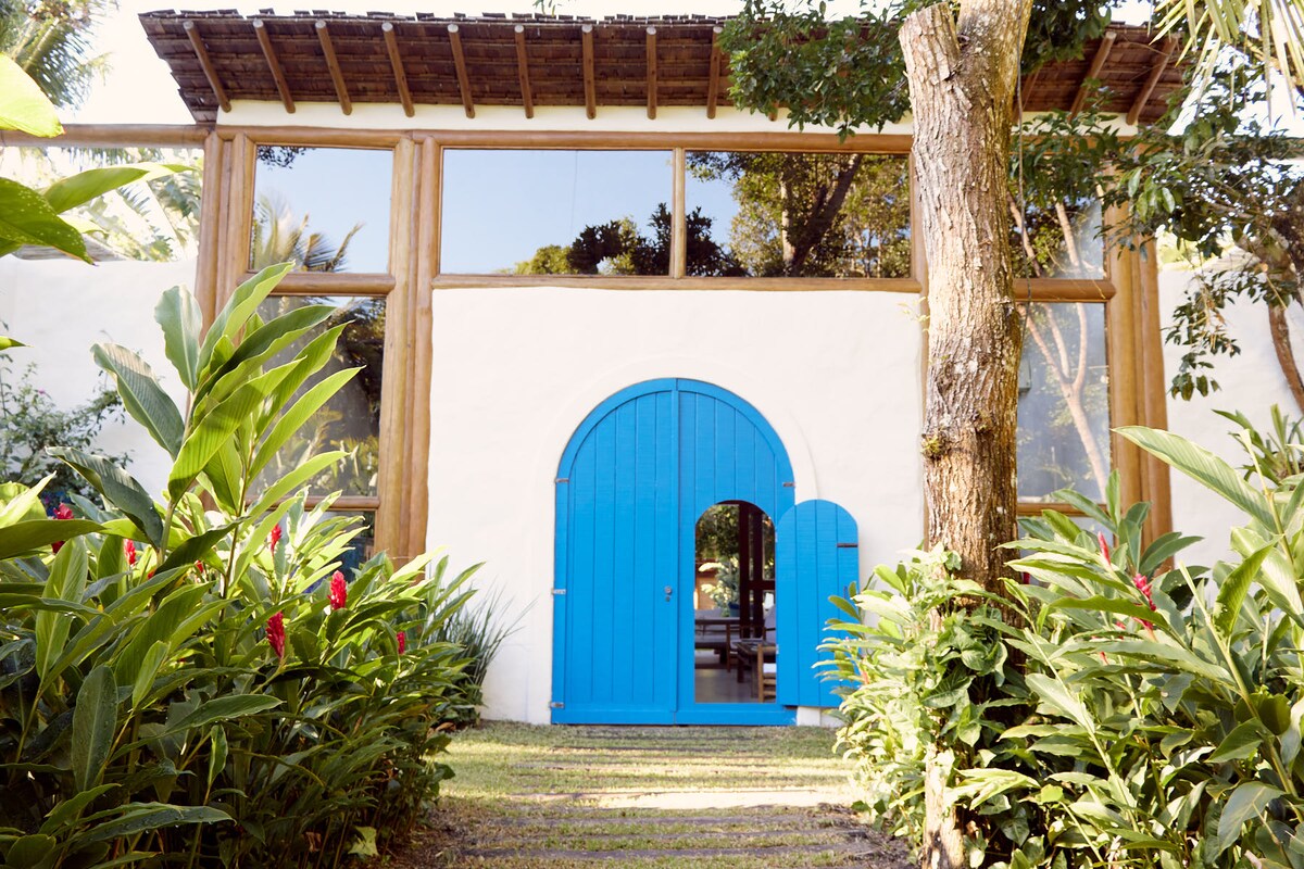 Private house beautifully designed to capture the essence of Trancoso, 3000 sq mt of lush garden, a maid is included in the price. House has fiber optic 500 MB max speed, its 10 minutes drive to famous Quadrado and 10 minutes walk or 5 mt by car to the beach Rio da Barra through a private path, a short cut. Luxury linens and towels provided. Beach umbrellas and chairs.