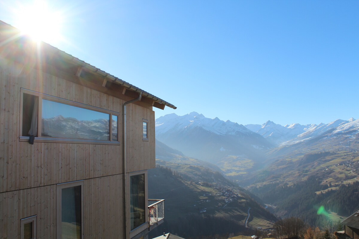 Grosszügiges freistehendes Architektenhaus zwischen Tradition und Moderne (170m2), mit viel Liebe zum Detail gestaltet und eingerichtet. Unser Haus bietet Paaren, Familien (mit Kindern) und kleinen Gruppen eine charmante Atmosphäre mit viel Liebe zum Detail, und gleichzeitig grosszügig Platz. Sehr ruhige Lage am Ortsrand. Ideal zum Ausspannen, Wandern, Schneeschuhlaufen und Skifahren.