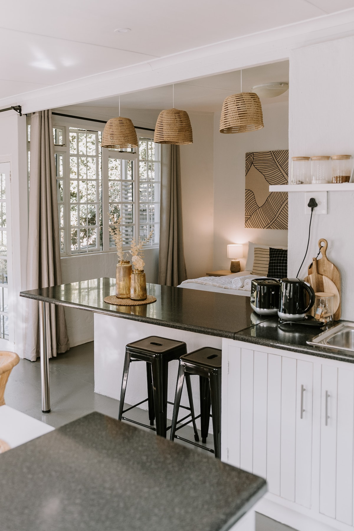 Die Hütte liegt eingebettet in wunderschöne einheimische Gärten. Für diesen besonderen Anlass, die Flitterwochen oder die Flucht vor dem Stress des Alltags in der Stadt, ist Hoopoe der ideale romantische Kurzurlaub für ein Paar. Egal, ob du dich in deinem eigenen Whirlpool auf der privaten Terrasse und im Garten mit herrlichem Blick auf die zentralen Drakensberge entspannst oder an den vielen Aktivitäten im Tal teilnimmst, das Ferienhaus bietet eine abgelegene Oase zum Entspannen und Erholen!