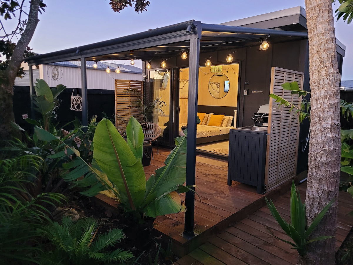 Tui Sunset Cabin bietet ein rustikales und dennoch komfortables Glamping-Erlebnis, eingebettet in eine ruhige Umgebung über dem Kauaeranga Valley und River. Die Hütten verfügen über ein Super-Kingsize-Bett, eine Liegeterrasse und einen Smart-TV für einen gemütlichen Filmabend im Bett. Die separate, rustikale überdachte Küchenzeile, Dusche und WC verbessern die einzigartige und private Atmosphäre der Hütte. Bonus: eine 40-50-minütige Infrarot-Sauna-Sitzung mit Ihrer Wahl an Gesundheit, Entgiftung, Sport und Entspannung nach einem Tag voller Abenteuer