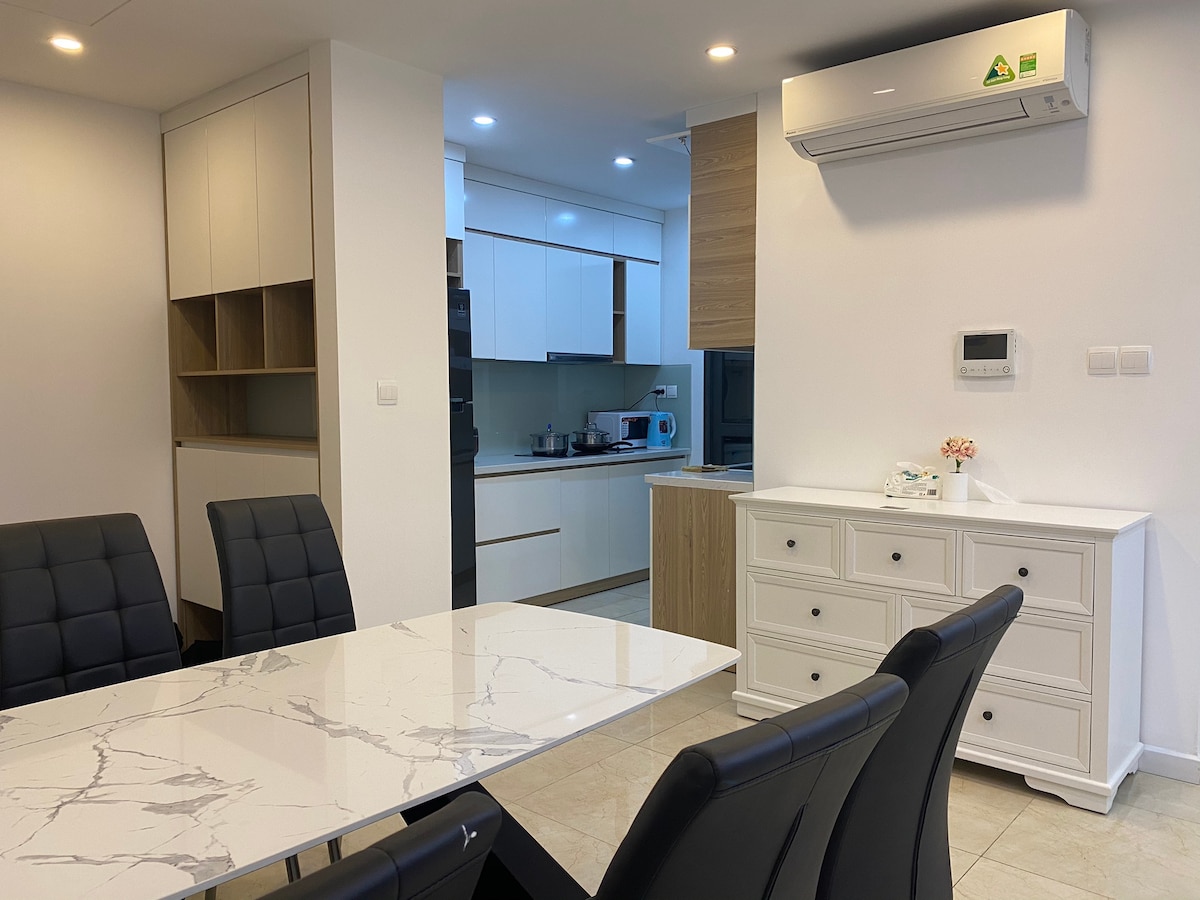 Entspanne dich mit der ganzen Familie in dieser ruhigen Unterkunft. Bring die ganze Familie in diesen erstaunlichen Ort mit viel Spielplatz. Die Wohnung ist modern, komfortabel gestaltet. Im Gebäude gibt es einen monumentalen Vincom-Bereich, in dem du ganz einfach einkaufen, in köstlichen Restaurants essen, Kaffee trinken kannst Wir halten in unserer Wohnung immer sauber und riechen frisch. +Balkon mit hoher Aussicht. Du kannst deinen Aufenthalt auf die romantischste Art und Weise genießen, zusammen mit Filmen, die auf Netflix gezeigt werden