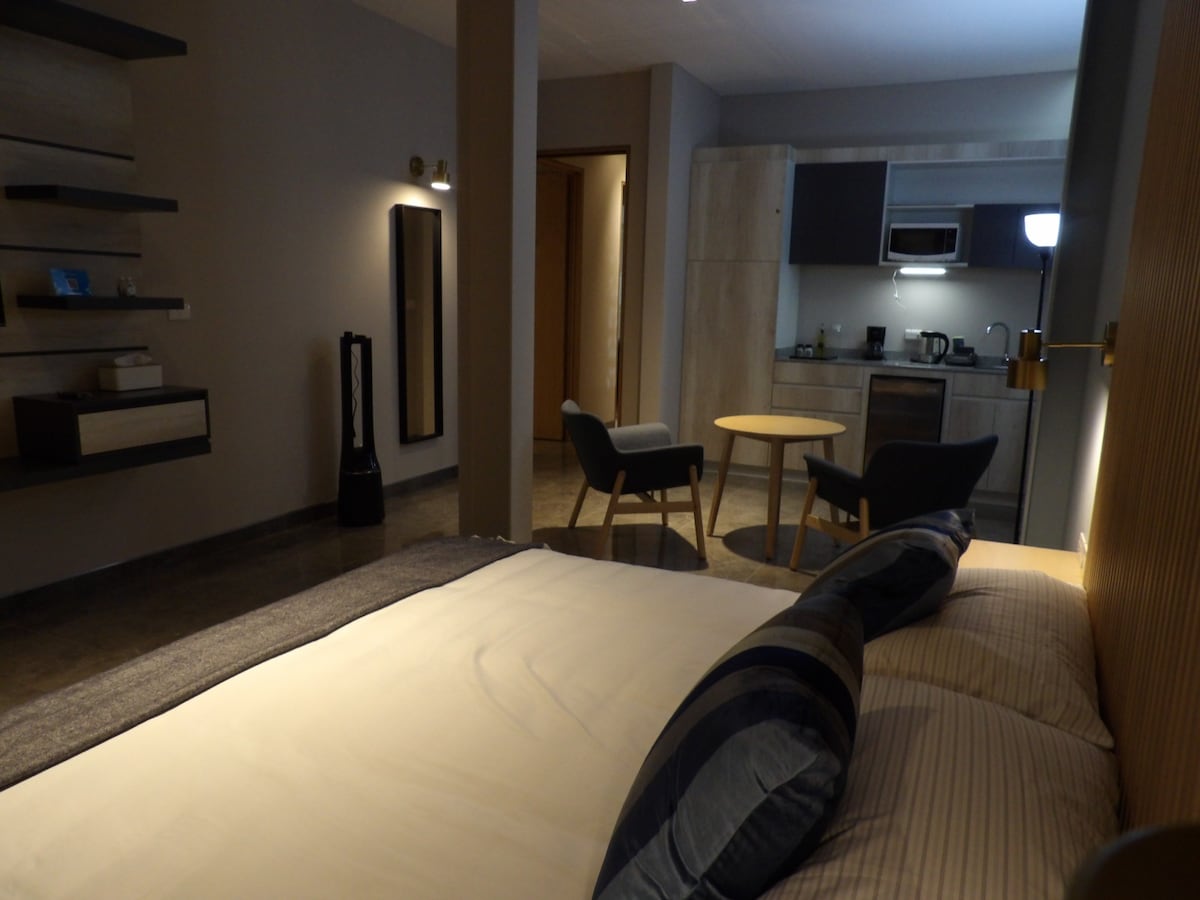 Wir sind ein unvergleichliches Erlebnis. Wir befinden uns nur zwei Blocks vom Engel der Unabhängigkeit entfernt, im Herzen der Zona Rosa. Dieser Raum wurde so gestaltet, dass er Ihnen alle Annehmlichkeiten bietet, die Sie für einen angenehmen Aufenthalt benötigen. Genießen Sie ein kleines Wohnzimmer, ideal zum Entspannen nach einem Tag in der Stadt, und ruhen Sie sich in einem Kingsize-Bett aus. Mit einer voll ausgestatteten Küchenzeile und einem eigenen Bad. Dachgarten mit CoWork-Bereich.