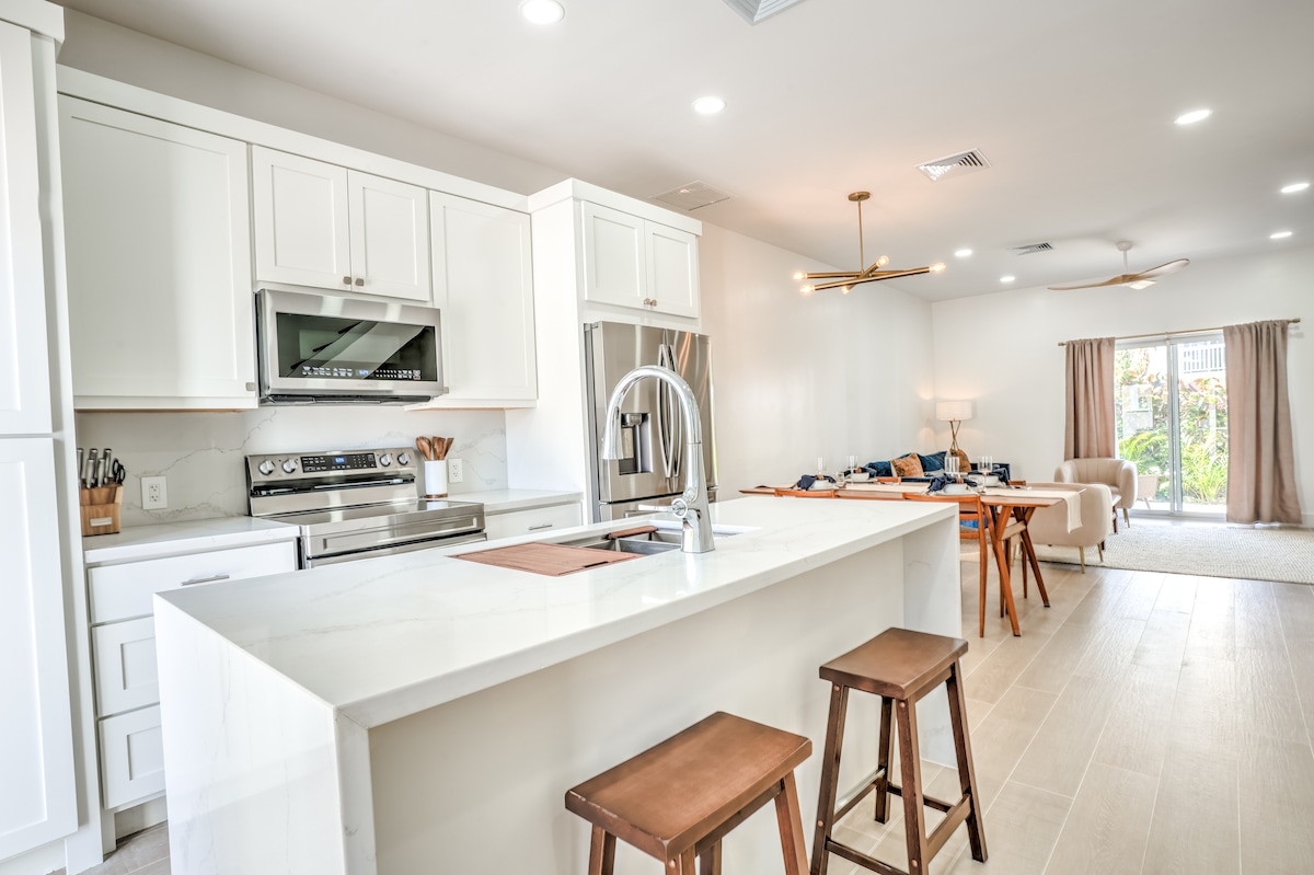 Betreten Sie unseren Bungalow und lassen Sie sich von dem geräumigen Wohnbereich verzaubern, der in tropischem Flair eingerichtet ist, das „Ich bin im Urlaub!“ schreit. Glastüren rahmen die Aussicht ein. Das Deck mit Liegestühlen bietet eine Aussicht, die deine Anhänger eifersüchtig machen wird. Im Inneren sorgen eine Küchenzeile und High-Speed-WLAN dafür, dass du diese beneidenswerten Bilder so schnell wie möglich hochladen kannst. Buche deinen Aufenthalt und lebe den Traum! Wir haben uns mit einem nahe gelegenen Yachthafen zusammengetan, der 1 Autominute und 8 Gehminuten entfernt ist, um Boote für 85 US-Dollar pro Tag zu parken. Es gelten die Geschäftsbedingungen.