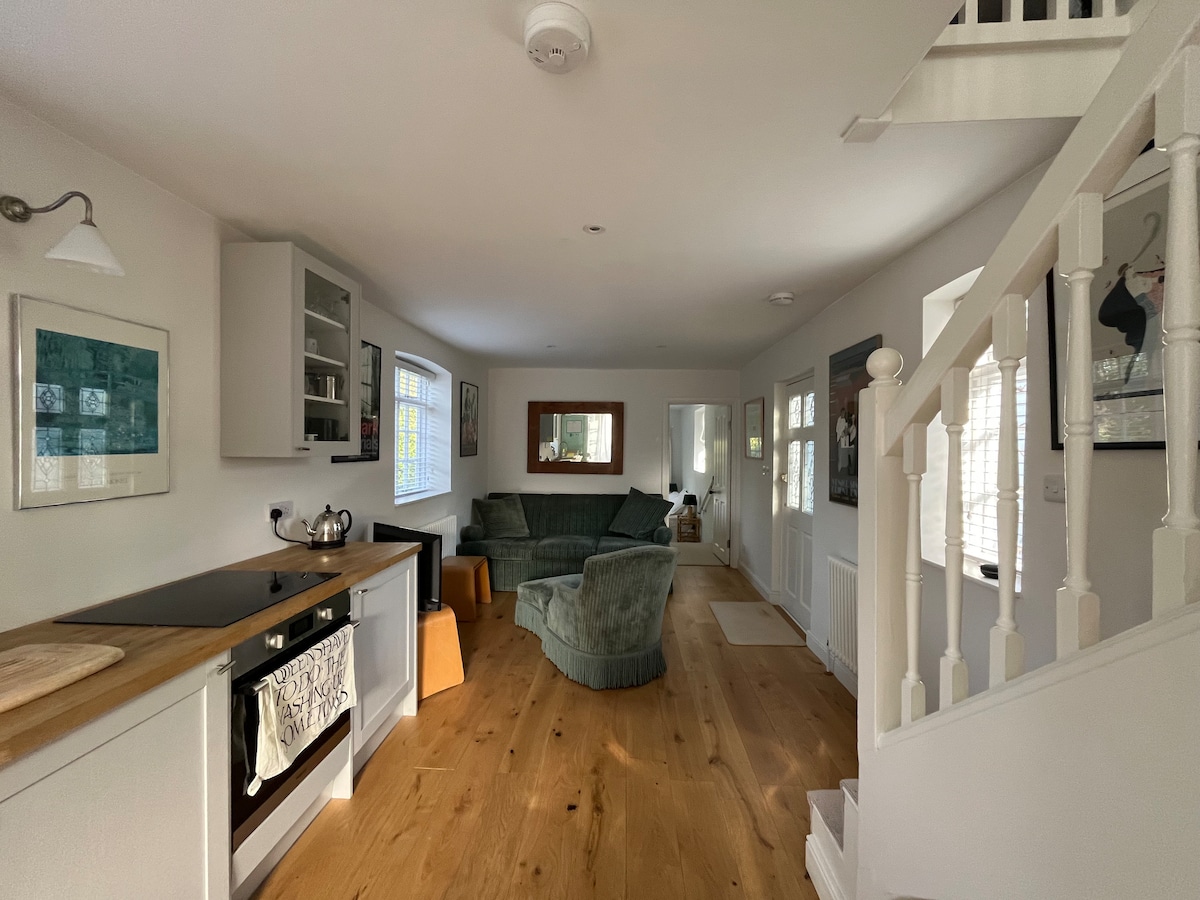 Wir begrüßen Gäste in unserem einzigartigen, eigenständigen, von einem Architekten entworfenen Studio-Haus. Ein Doppelzimmer mit eigenem Bad. Große Lounge mit Küche Das Sofa im Wohnzimmer lässt sich in ein Bett für eine Person umwandeln. (Hinweis: Für die Nutzung des Schlafsofas wird eine zusätzliche Bettwäschegebühr erhoben – 15 £ für eine Nacht – 30 £ für 2 oder mehr Nächte.) Vollständig öffnende Falttüren Babybett vorhanden (bitte bringe einen Babyschlafsack oder etwas Passendes mit). Elektroauto-Ladestation verfügbar (20–25 £) für volle Ladung