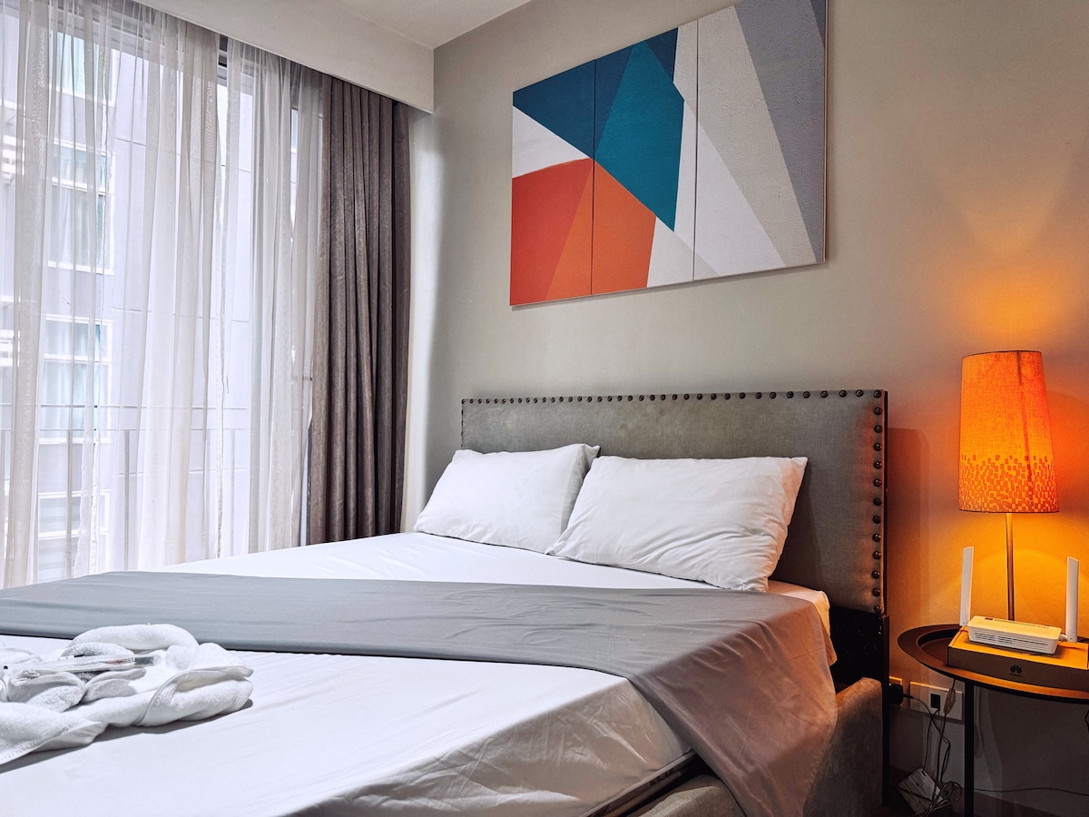 Entspanne dich mit der ganzen Familie in dieser friedlichen Unterkunft in den Gramercy Residences im Herzen von Makati, Metro Manila, Philippinen. Gramercy ist der berühmteste Wohnturm und die exklusive Enklave von Luxus-Wolkenkratzern in Makati. Fühle dich wirklich wie zu Hause und erlebe einen unvergesslichen Aufenthalt in unserem süßen, geräumigen Zimmer mit 1 Schlafzimmer (35 qm) und zwei Himmelbalkonen für einen atemberaubenden Blick auf den Sonnenuntergang. Nur wenige Gehminuten von der Century City Mall entfernt.