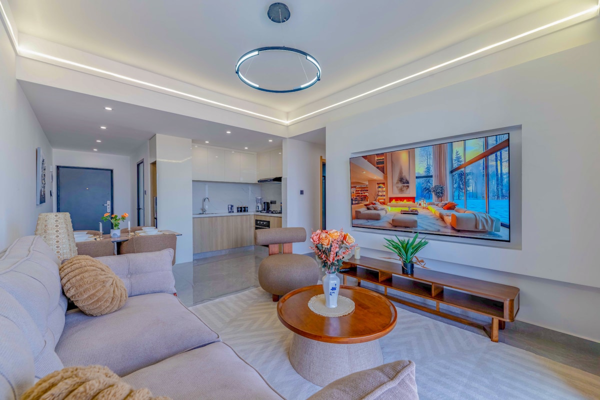 Diese moderne, minimalistische Wohnung mit 3 Schlafzimmern und 2 Bädern bietet eine perfekte Mischung aus Komfort und Bequemlichkeit für Reisende - egal ob Profis, Familien, Gruppen oder Touristen. Genieße Zugang zu einem Fitnessraum, einem unbeheizten Swimmingpool und einem Kinderspielzimmer. Günstig gelegen gegenüber einem rund um die Uhr geöffneten Naivas-Supermarkt und nur einen kurzen Spaziergang von der Junction Mall entfernt, ist dieser Raum ideal für kurze und lange Aufenthalte und bietet eine gemütliche, heimelige Atmosphäre.