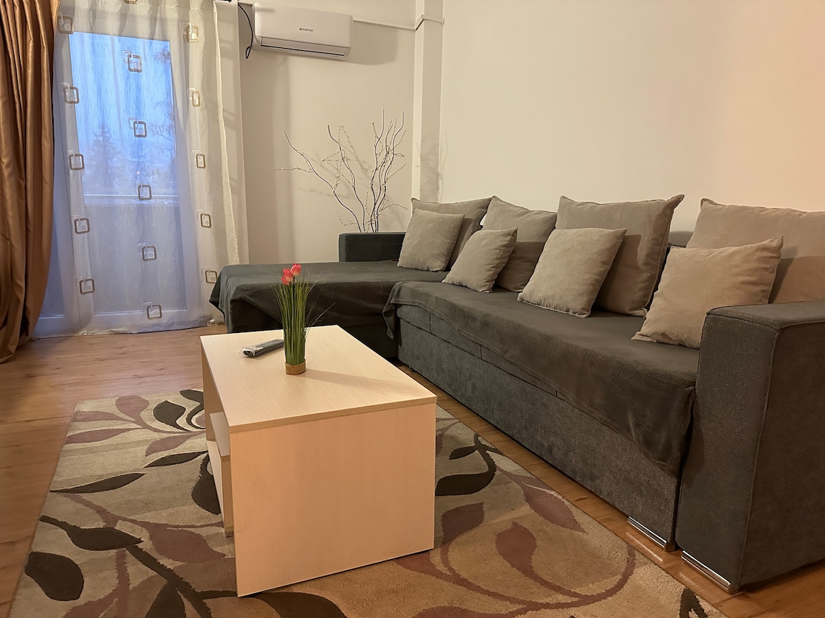 Moderne, gemütliche Wohnung nur 15 Minuten vom Stadtzentrum von Iași (Palas & Palatul Culturii) entfernt, in einer ruhigen, familienfreundlichen Gegend mit guter Anbindung an die öffentlichen Verkehrsmittel. ✨ Ideal für Remote-Arbeit – dedizierter Schreibtischbereich 🐾 Vollständig tierfreundlich – bring deinen Hund, deine Katze oder deinen Hamster mit! ☕ Kostenloses WLAN, Parkplatz und Kaffee (ja, wirklich!) 🌿 Offenes Layout mit weichen, beruhigenden Pastelltönen 🛏️ Bequemes Bett, frische Bettwäsche und eine hochwertige Matratze Ihr gemütlicher Aufenthalt in Iași beginnt hier – ich würde mich freuen, Sie zu beherbergen!