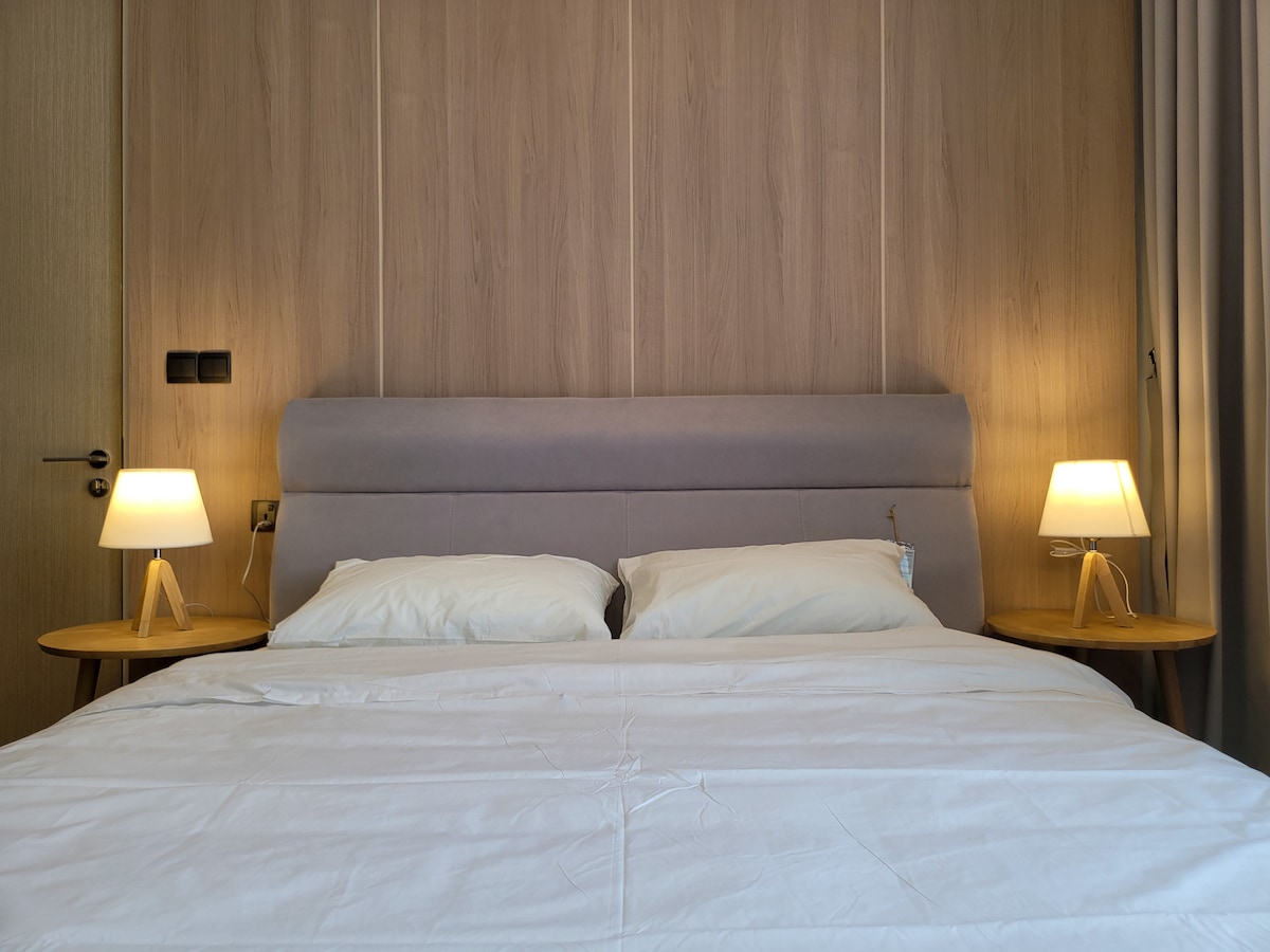 Unser Anwesen befindet sich in der erstklassigen KLCC-Enklave. Diese geräumige Designer-Suite bietet einen anspruchsvollen Rückzugsort mit allem Komfort von zu Hause, was sie zur perfekten Wahl für kurze und längere Aufenthalte macht. Mit luxuriöser Bettwäsche in Hotelqualität, vollausgestatteter Küche und Highspeed-WLAN möchten wir dir großen Komfort und Genuss bieten. - 400 m zu den KLCC Twin Towers - 5 Gehminuten bis zum LRT-Bahnhof KLCC - 6 Gehminuten bis zur Avenue K Shopping Mall