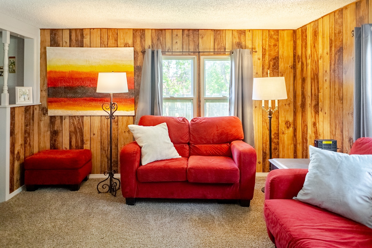 Simple and convenient home in a peaceful neighborhood, centrally-located close to trails, art, food, and business. 3BRs named after our favorite outdoor places. The Coler room is our master - full private bath, queen bed, makeup vanity, 2 showers, TV, and massaging recliner. The Kessler and Hobbs rooms are the 2 guest rooms of the home with access to a full bath via shared hallway. Each room is equipped with a full bed, closet, and TV. Full Kitchen, full utility, living and dining rooms also.
