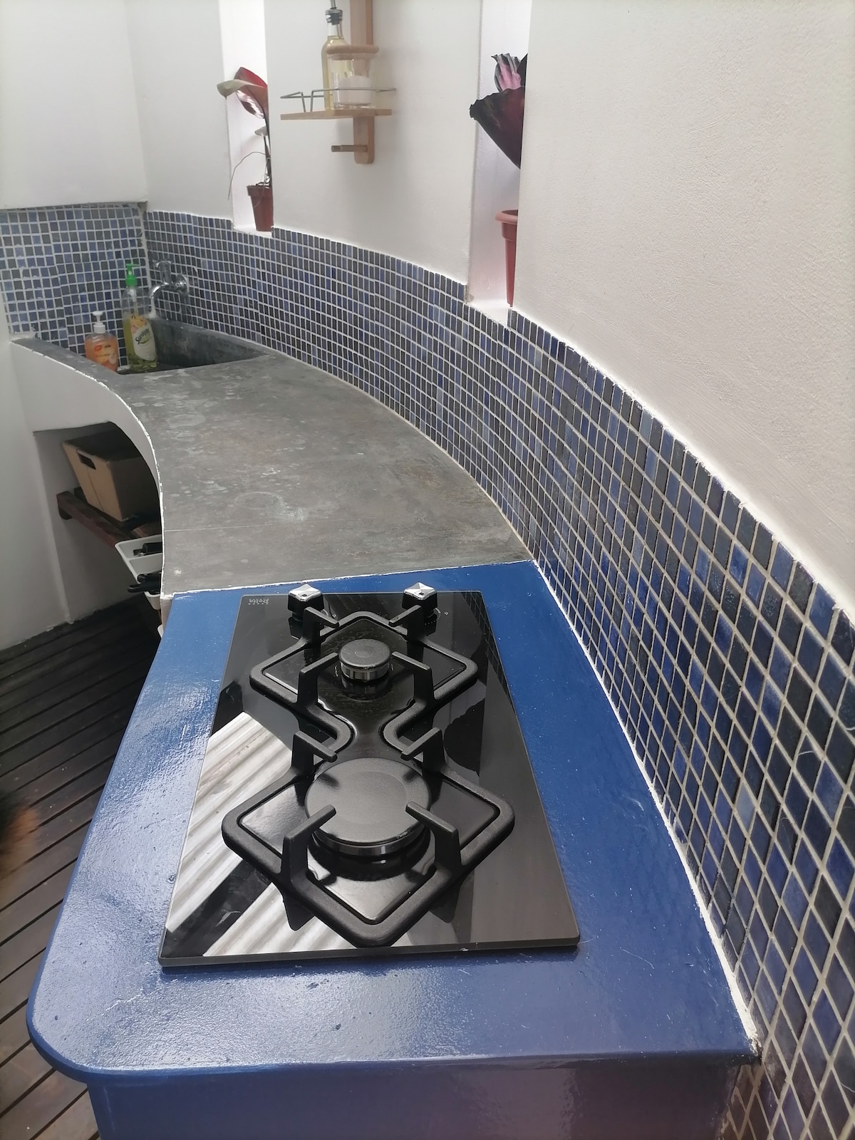 Studio North verfügt über ein Hauptschlafzimmer (Doppelbett), ein angeschlossenes Schlafzimmer (2 Einzelbetten), 2 Duschbäder (mit Toiletten) und eine Küchenzeile. Es hat auch einen wunderbaren kleinen Balkon, um die Aussicht und erstaunliche Sonnenuntergänge zu genießen. Alle Vermietungen haben Zugang zum Garten (mit Grill und Sonnenliegen) und zur Waschküche.