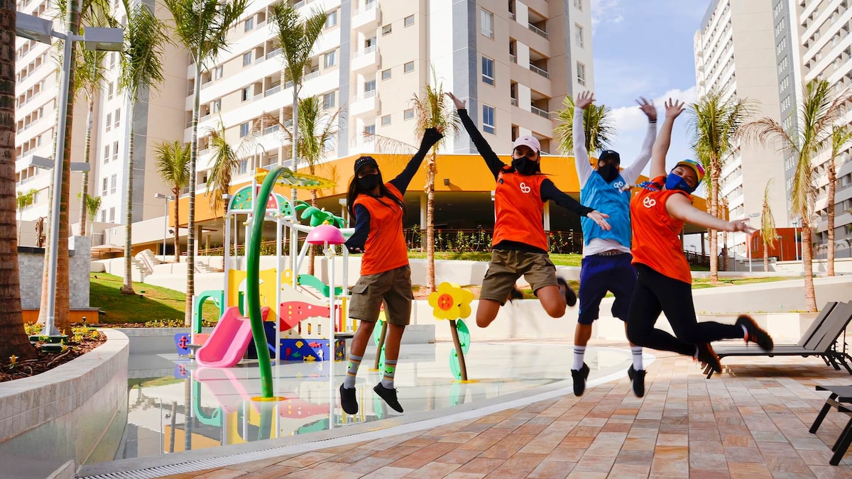 Komfort und Spaß für die ganze Familie! Die Suite bietet bequem Platz für bis zu 5 Personen. Es verfügt über Platz, um Fast Food in der Mikrowelle zuzubereiten (ohne Utensilien, Sie können Ihre eigenen mitbringen), TV, Klimaanlage und Balkon. Ideal für diejenigen, die am selben Ort genießen und sich ausruhen möchten. Mahlzeiten und Getränke sind nicht im Tagespreis enthalten. Kinder lieben die Pools und die betreute Freizeit (da vergisst man die Elektronik!). Wenn du noch mehr Spaß haben möchtest, bist du 5 Minuten von Thermas dos Laranjais entfernt (kostenloser Transfer).