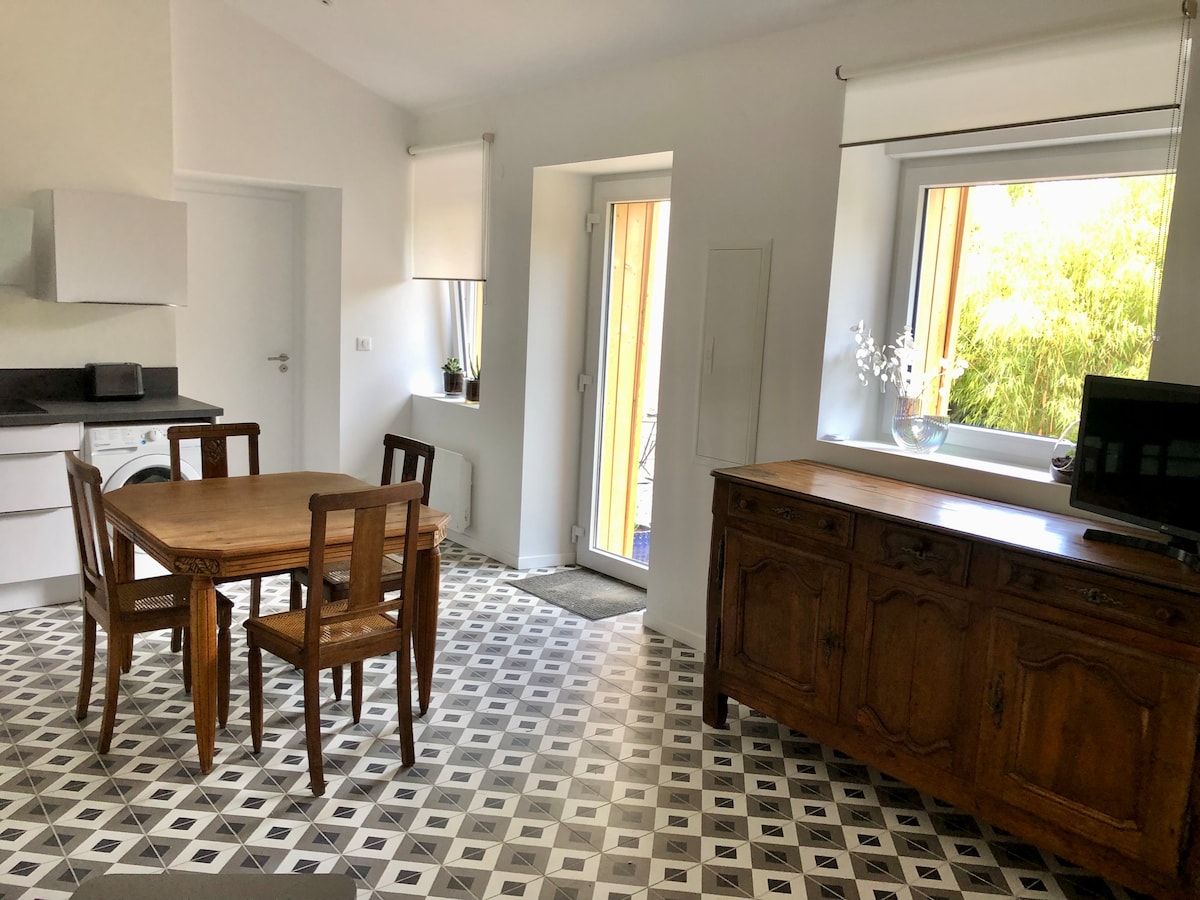Helle Unterkunft von 80 m2, Vintage-Dekor, bestehend aus einer Küche und einem Wohn-Esszimmer mit einem kleinen Hauch der 50er-60er Jahre, einem Schlafzimmer in den Farben der siebziger Jahre mit einem Doppelbett von 140 cm und einem zweiten Schlafzimmer, zurück in den achtziger Jahren, mit 2 Einzelbetten von 90 cm und Kleiderschrank. Badezimmer und separates WC. Terrasse, Garten. Ideal für eine Familie von 4 Personen. Partys und Geburtstage sind nicht erlaubt.