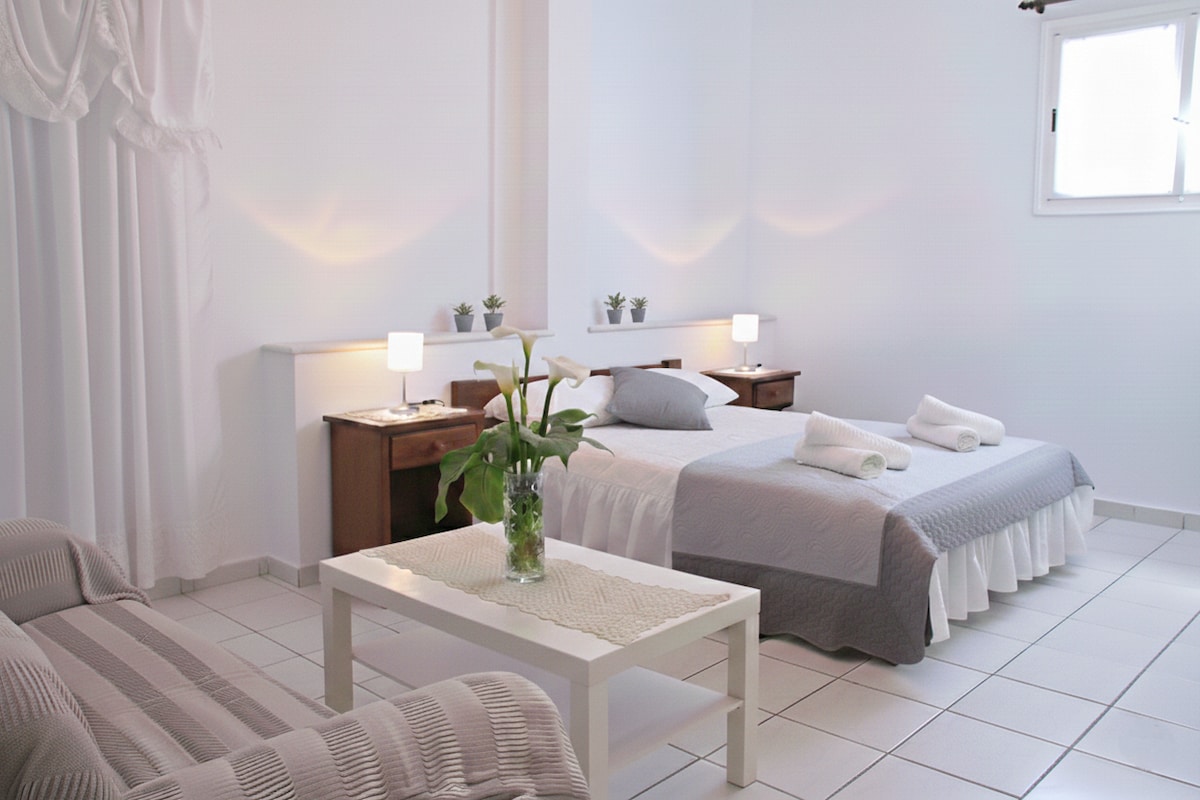 Ein ruhiger Komplex von Studios, ideal für einen entspannten Urlaub. **WICHTIGE HINWEISE* ** - Wir benötigen deine Reisepass- oder Ausweisnummer, um deine Buchung zu bestätigen. - Das Objekt ist weit entfernt von allem. - Es gibt keine öffentlichen Verkehrsmittel. - In der Gegend gibt es nichts zu tun. - In der Nähe des Dorfes befinden sich keine Lebensmittelgeschäfte. - Wir empfehlen dir, NICHT zu buchen, wenn du nicht bereit bist, ein Fahrzeug zu mieten, da der private Transfer und die Taxis 50 € pro Fahrt kosten.
