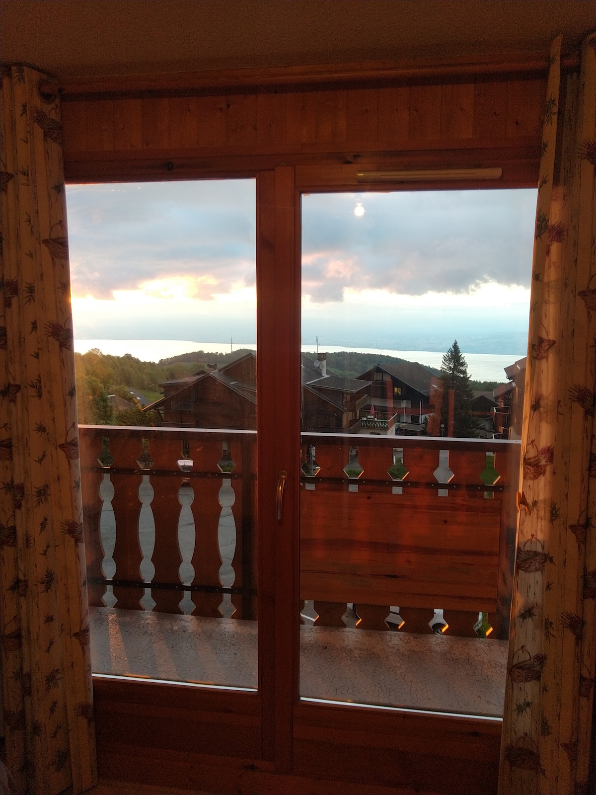 Die Luxus-Wohnung mit Panoramablick auf den Genfersee befindet sich in Thollon les Memises (950 m). Nur 10 Autominuten vom See und 2 Autominuten vom Skigebiet entfernt. Die Wohnung befindet sich in der zweiten (obersten) Etage eines Chalets. Es gibt weder vorne noch hinten direkte Nachbarn, sodass es eine freie Aussicht und Privatsphäre gibt. Die Wohnung bietet Platz für 2 Personen mit einem Baby. Geschäfte (Käserei, kleiner Supermarkt) sind zu Fuß erreichbar.