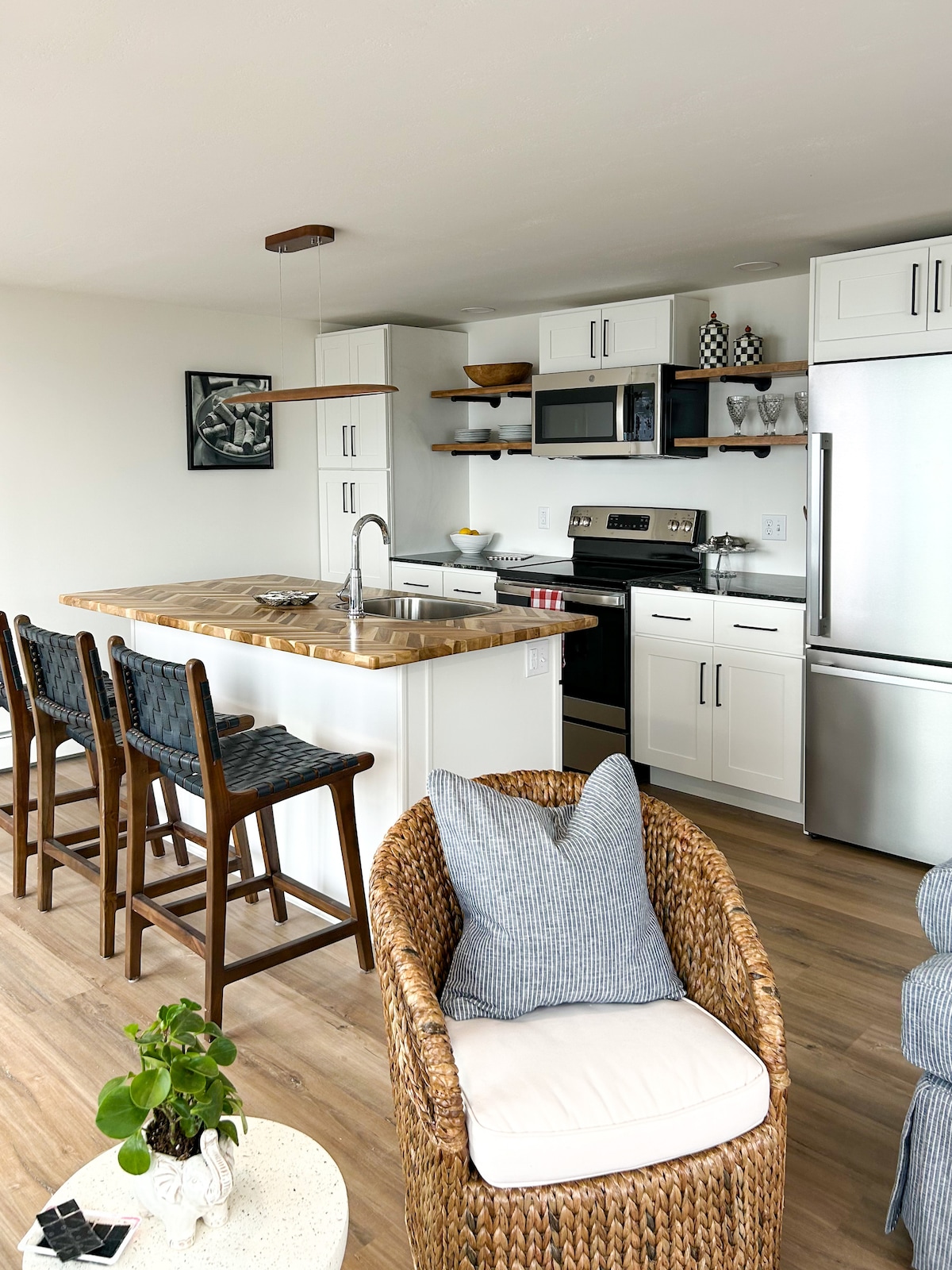 Genieße die Erkundung von Charming Clayton und den 1000 Inseln in unserer neuesten, umgebauten Seabreeze-Themensuite, Waterfront zu unserer Bucht, ausgestattet mit modernen Annehmlichkeiten und gehobenen Details vom Kingsize-Bett bis zur begehbaren Dusche! Komplett mit Küchenzeile, die mit allem Notwendigen ausgestattet ist, und einem Ausziehsofa, das sich hervorragend für einen dritten Gast eignet! Unsere gut isolierte Einheit verfügt über einen Smart-TV mit Streaming, schnelles WLAN, sofortiges Warmwasser und eine zentrale Lage, mit Anlegestelle für Boote und zum Angeln (Zuschlag)!