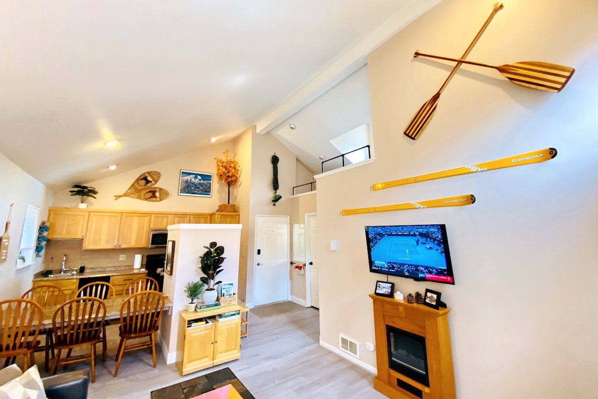 Gemütliche, moderne Bergwohnung in zentraler Lage, weniger als 1 Gehminute vom Dorf SR entfernt. Kurzer Spaziergang zu Brauereien für ein kaltes Bier oder zum Café für heißen Espresso & frisches Gebäck. Das Dorf bietet Geschäfte, Markt, Eislaufen, Hüpfburgen, Felsklettern und Minigolf. SHARC ist 2 Minuten entfernt und bietet Innen-/Außenpools und Whirlpool. Radwege sind 100 Fuß entfernt. Der Deschutes River ist leicht zum Schwimmen und Angeln erreichbar. Mt. Bachelor 19 Meilen entfernt für begeisterte Skifahrer, Snowboarder, Showschuh. DCCA # 1618