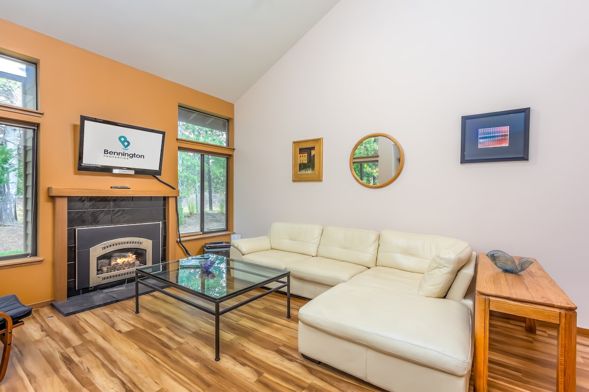 Gemütliche, modernisierte Eigentumswohnung nur wenige Schritte vom Sunriver Village entfernt. Geh aus der Haustür und du findest frischen Kaffee, Gebäck, Bier, Lebensmittel, Eislaufen oder Minigolf (je nach Jahreszeit) und alles andere, was das Dorf zu bieten hat! Der Wander-/Fahrradweg befindet sich hinter dem Haus, der dich rund um Sunriver führt, einschließlich Lodge, Nature Center, Fort Rock Park, Stables, Marina oder SHARC (ein Pool/Whirlpool), der auch nur 2 Autominuten entfernt ist. Ab Juni 2025 haben wir auch eine neue Klimaanlage und Heizung!