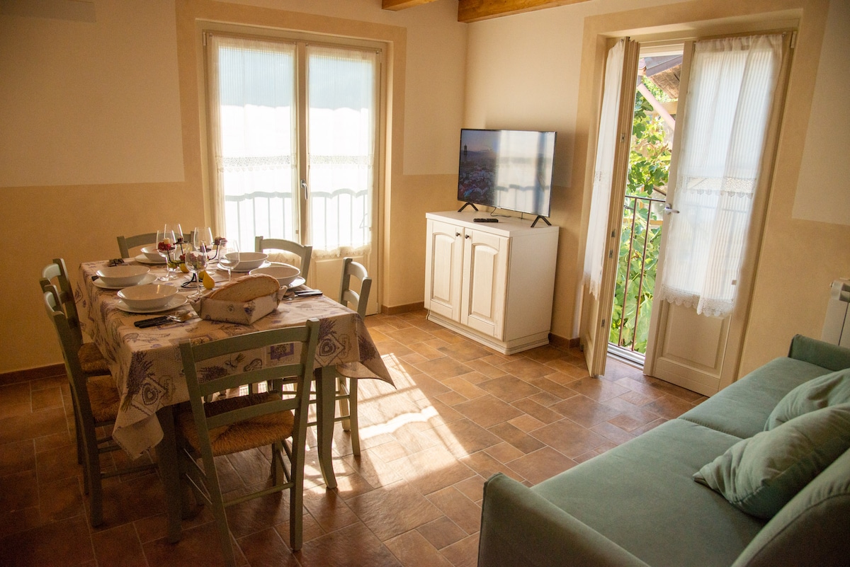 L’ appartamento Michelangelo è situato al secondo piano , con le finestre che si spalancano sulla valle sottostante. 75 mq dove staccare la spina senza paura di dover rinunciare ai nostri confort. Cucina per 5 persone : tavolo, 6 sedie, piano cottura ad induzione, frigorifero , forno a gas e forno a microonde, lavastoviglie, posate pentole stoviglie e piatti , tovaglie. La sala con comodo divano- letto matrimoniale , mobile con tv, camera con due letti. Lenzuola, asciugamanti per ogni ospite