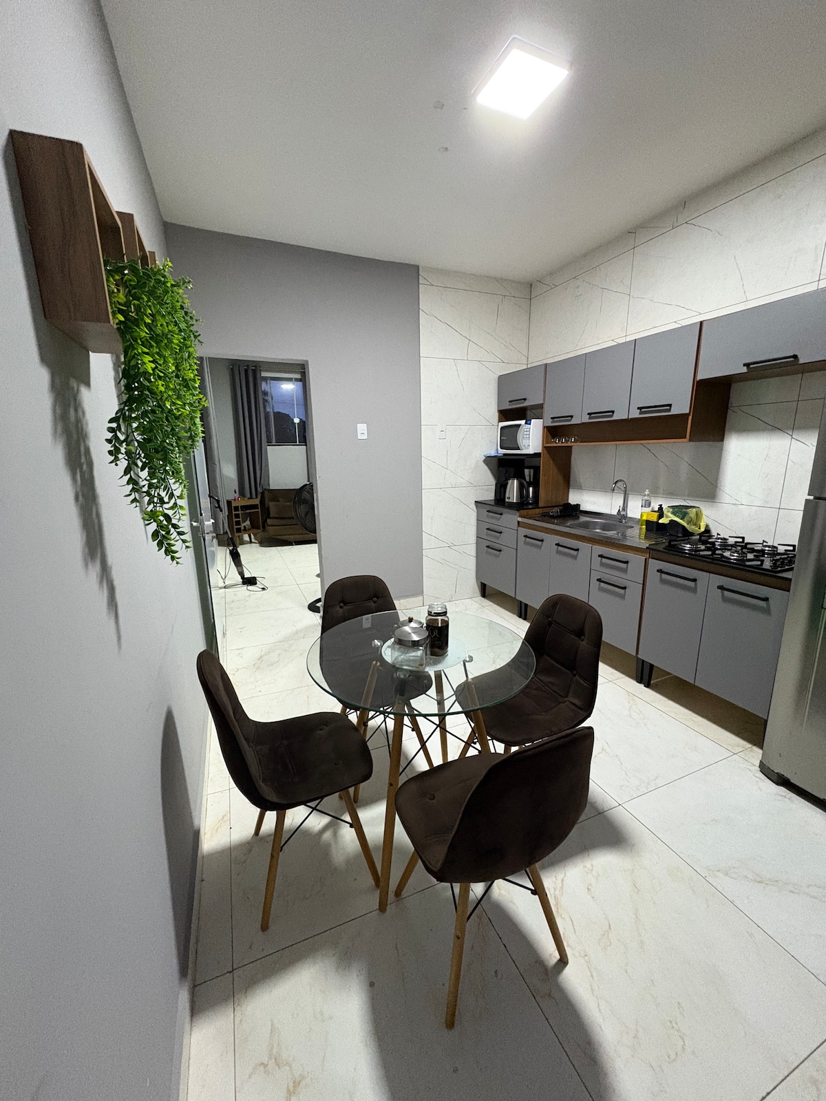 Unsere Küche verfügt über 4 Mundherd, Maisonette-Kühlschrank, Tisch für zwei Personen und eine charmante Kaffeeecke, um den Tag mit Energie zu beginnen! Das Badezimmer verfügt über eine Box, eine elektrische Dusche und einen Trockner. Im separaten Zimmer kannst du ein gemütliches Queensize-Bett, einen funktionalen Kleiderschrank, einen 32-Zoll-Fernseher mit Streaming-Kanälen und eine Klimaanlage für perfekte Nächte genießen. Das Hotel liegt in einer zentralen Region, 3 km von BR entfernt! Das Parken im Innenhof ist der ideale Platz für deinen Aufenthalt. Fühl dich wie zuhause und genieße jeden Moment!