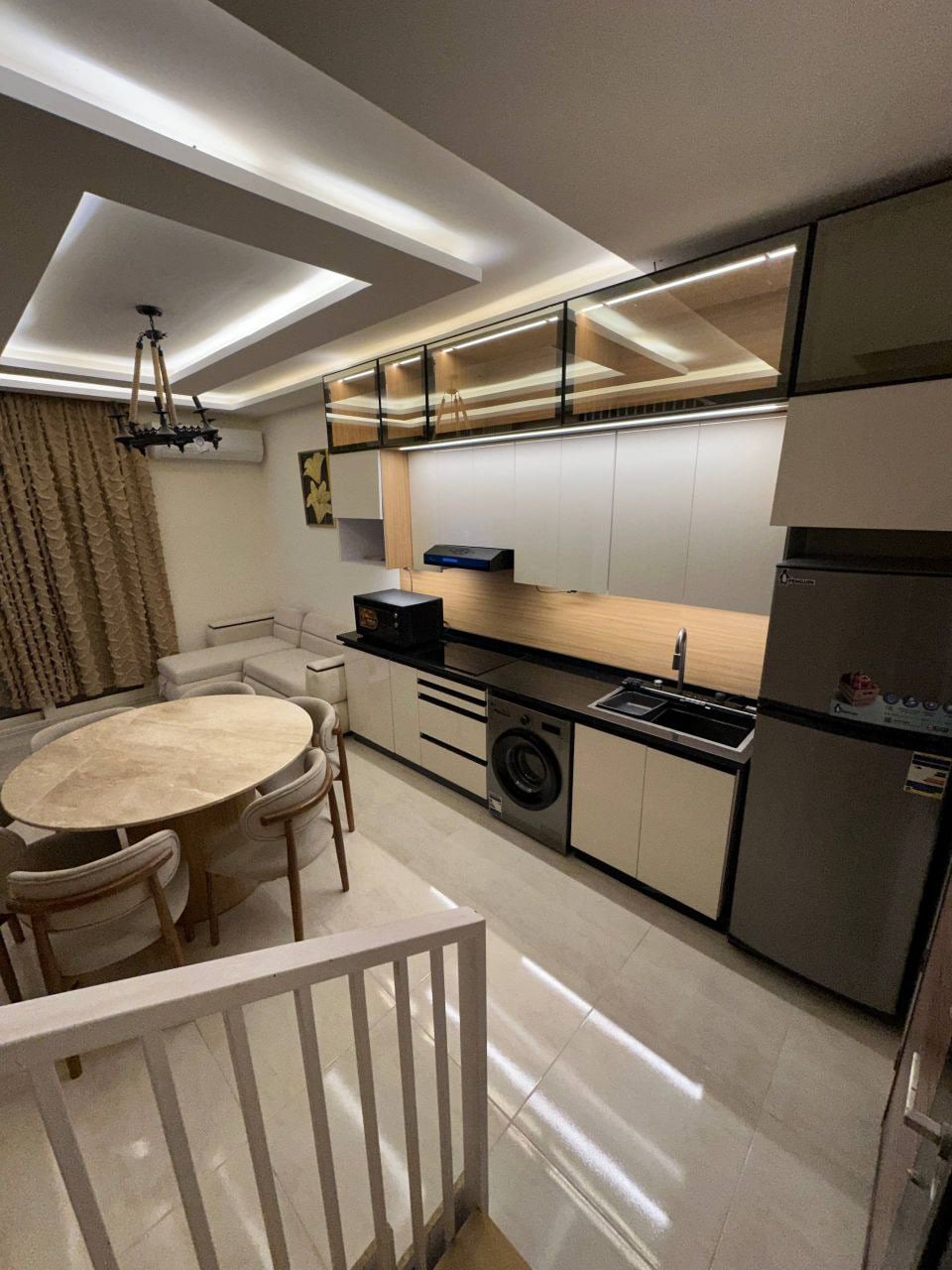 Апартаменти розташовані біля моря, неподалік пляжу з кораловим рифом Червоного моря. Дорога до аеропорту займає близько 15 хвилин. Поруч — Soho Square з ресторанами, магазинами та прогулянковими зонами. Квартира знаходиться на першому поверсі та має прямий вихід до басейну, що зручно для відпочинку біля води протягом дня. У районі іноді можуть проводитися будівельні роботи, тому вдень можливий шум. Уранці та ввечері зазвичай тихо й спокійно.
