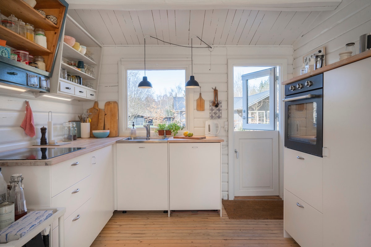 Wonderful vacation house situated a stone's throw from the water and the beach. Literally speaking! Here you can wake up to the gentle sound of the waves, almost calling your name, if you feel for a morning swim. On warm days, you can enjoy meals on the terrace most suitable to enjoy both the morning sun and also a beautiful view to the sunset. The high roof inside creates a good and spacious feeling making it easy for family and friends to enjoy life together during all times of the year.