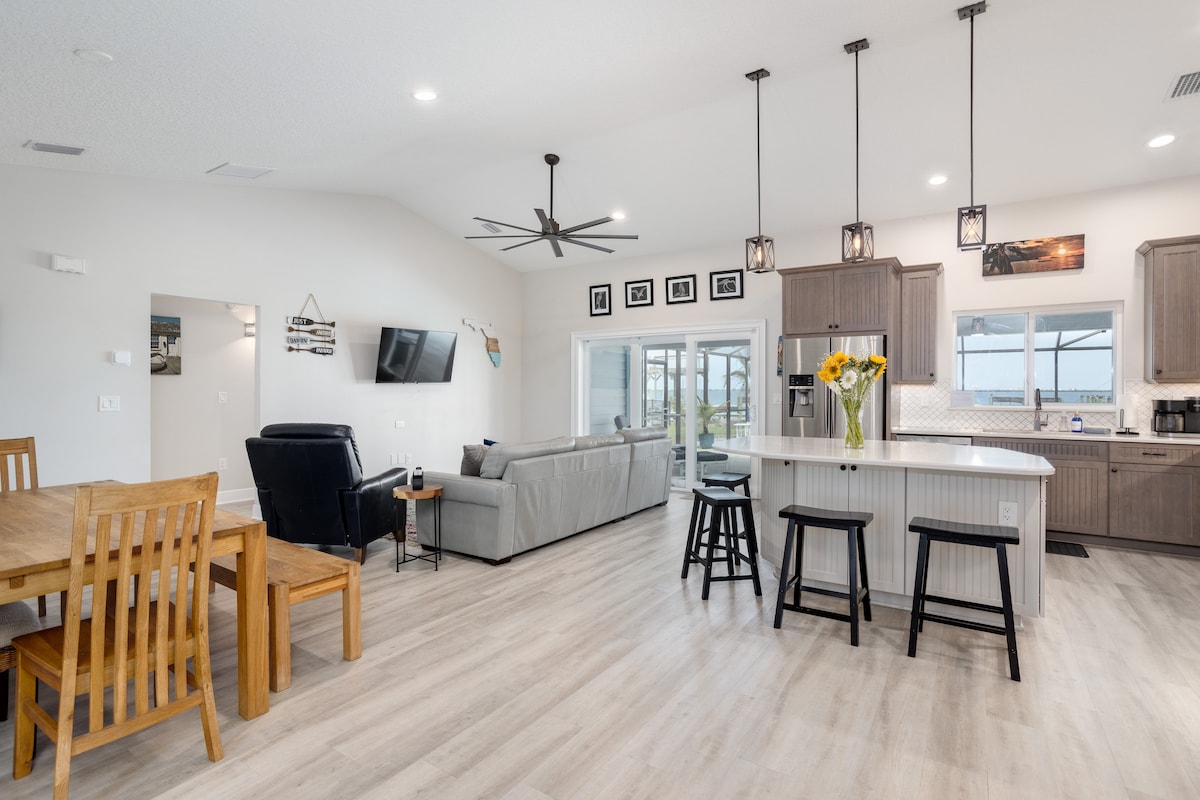 Unwind in this intercoastal waterfront paradise with breathtaking sunrise views over the Banana River. Spot turtles, dolphins & manatees from your private dock. Retreat into elegance with an upscale split floor plan coastal home with private pool. Mins from Cocoa Beach, Port Canaveral & Kennedy Space Center. Disney & Orlando are 40 mins away. 🐠🚣♂️ We provide kayaks, fishing poles, beach chairs & pool toys! Send us a message about the ultimate getaway with your own private pool & dock