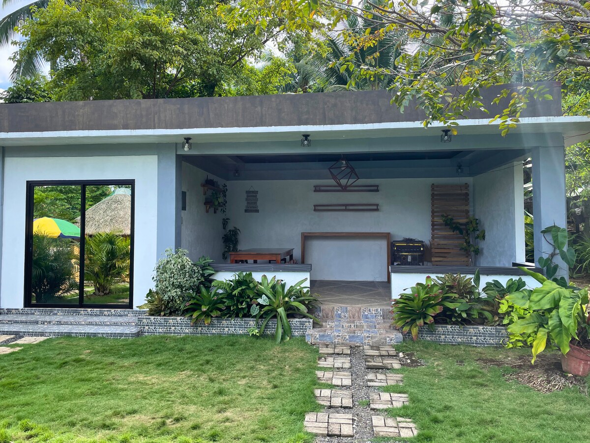 Beach cottage perfect for small to medium-size families, or small groups. Has a full kitchen (except oven). Gentle waves, ocean at your feet. Rustic interior décor with native materials. Access by ~125 steps, great exercise, not for the weak of heart! Parking at top. Great Mayon views from the beach cottage.