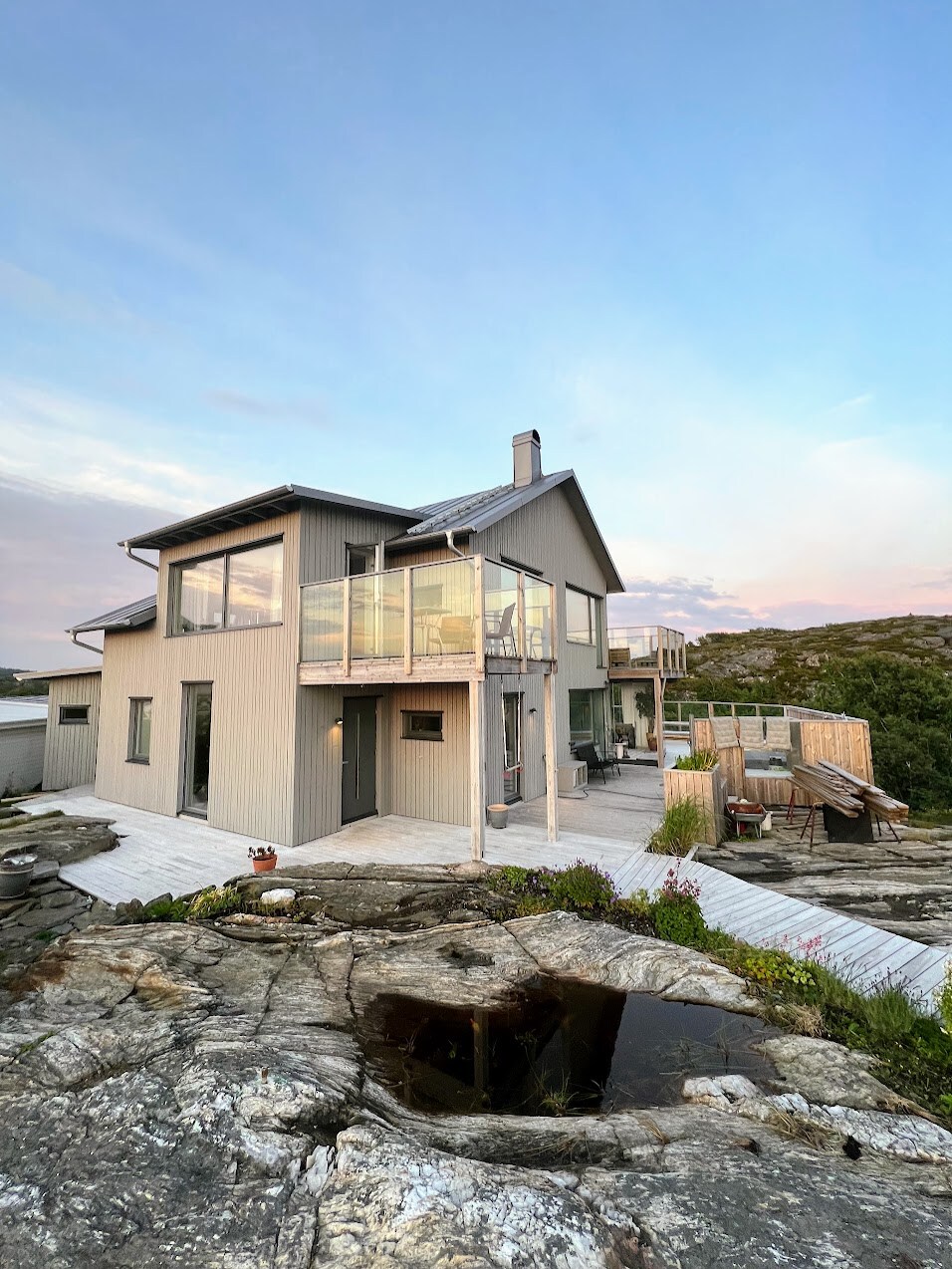 Söker ni något som är utöver det vanliga? Vi lovar att er vistelse hos oss kommer att vara helt unik! Vi har byggt vårt hus och gäststuga på en klippa nära vattnet, bara 20 meter från Kåreviks hamn och badplats. Utsikten över Åstol, Marstrand, Dyrön och horisonten är enastående och hänförande. På mindre än en minuts avstånd har ni tillgång till ert morgondopp, sommar som vinter. Detta är ett ultimat ställe för par som vill koppla av och njuta av sol, vind och vatten året runt.