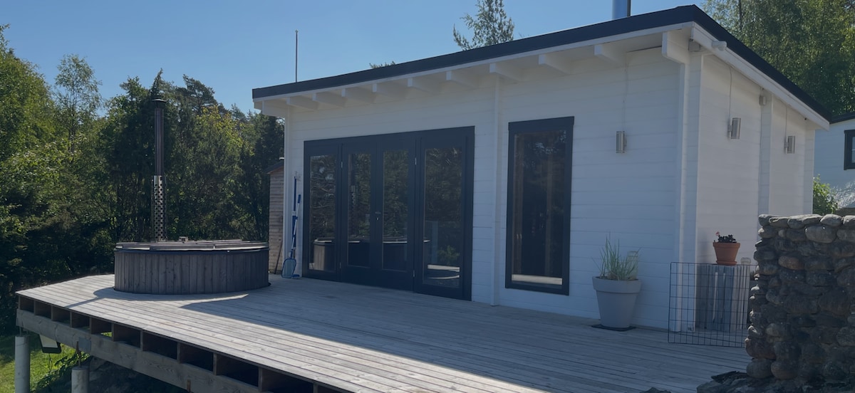 Mit dem Meer direkt vor dir. Genieße das Naturschutzgebiet und den Fjord im ersten Stock - völlig einzigartige, einfache, aber komfortable Unterkunft 100 Meter von den Schwimmklippen entfernt. 1 km zu Fuß durch den Wald ist das Sundsby Herrenhaus, wo du zu Mittag und zu Abend essen kannst. Spannende Wanderwege rund um das Naturschutzgebiet und mehrere schöne Badegebiete. Wir wohnen mit unseren drei Kindern im Haus nebenan, also kommen und gehen wir. Sauna, Pizzaofen und Außendusche befinden sich im Garten, und all die schönen Dinge, die das schöne Tjörn zu bieten hat, sind gleich um die Ecke!