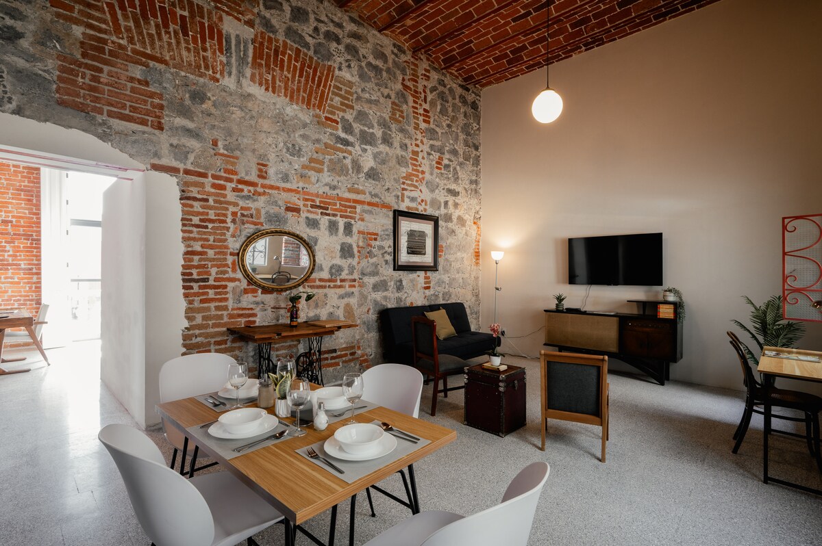 Vive una experiencia única en este loft industrial y minimalista dentro de una casona del siglo XVIII completamente reacondicionada. Ideal para dos personas, cuenta con cocina integral, 1.5 baños, internet de alta velocidad y todas las comodidades modernas. Disfruta su impresionante patio y terraza, y su inmejorable ubicación a pocos minutos del Centro Histórico.