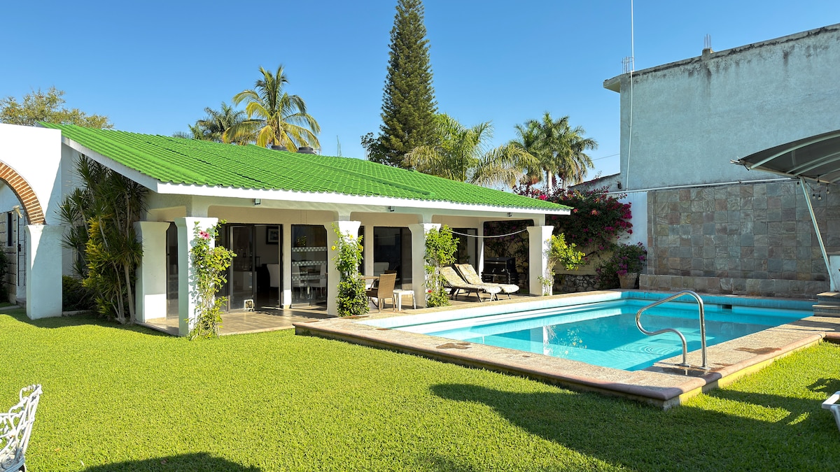 Schönes, funktionelles und komfortables Ferienhaus in der Nähe von Cuautla, Garten und kleiner und angenehmer privater Pool; ideal für Kinder bis 10 Jahre. Das Hotel liegt auf dem Gelände der ehemaligen Hacienda del Río Coahuixtla. 3 Schlafzimmer 2,5 Badezimmer, 2 Terrassen, ausgestattete Küche, Grill-Esszimmer und Esszimmer, Palapa und Blick auf den Fluss. Haustiere willkommen; keine Partys oder sehr laute Musik. Geschlossene Wohnanlage, im Gemeinschaftsbereich gibt es einen weiteren Garten und Pool. Zugang durch Zahlung der Gebühr der Wohnanlage.
