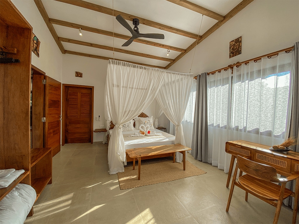 Entdecken Sie unsere drei Villen in verschiedenen Größen, die Platz für 2 oder 4 oder 8 Personen bieten. Sie verbinden modernen Komfort mit authentischem madagassischem Charme. Für Ihren Komfort steht Ihnen eine Putzfrau zur Verfügung. Genießen Sie die Exklusivität unserer Villen, eingebettet an einem Privatstrand für einen ruhigen und unvergesslichen Aufenthalt.