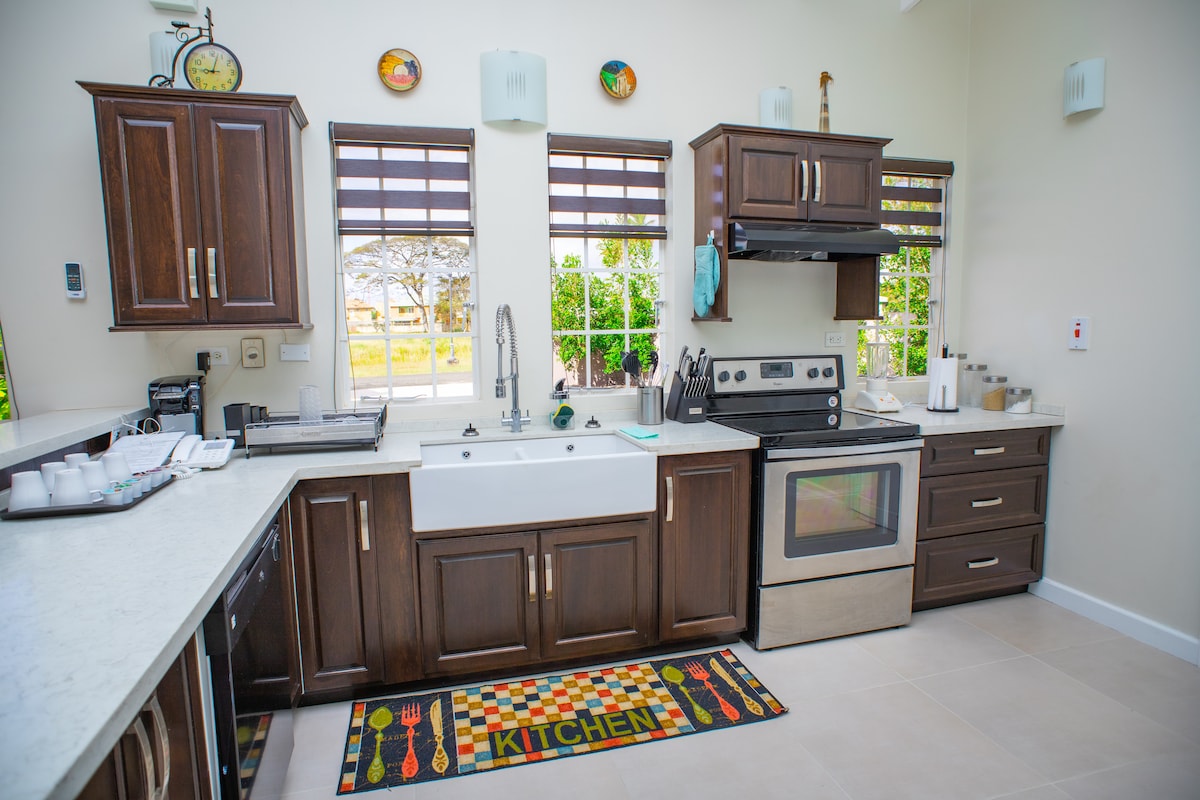 Willkommen in der Casa Josepha, unserer hellen, exquisiten, neuen Villa mit unserer romantischen Luxus-Wohnung – El Romeo. Wache in unseren üppigen Gärten zum Gesang tropischer Vögel auf. Genieße die hellen Wohn- und Küchenbereiche, ziehe dich in deinen Arbeitsbereich oder Siesta in deinem gemütlichen Schlafzimmer zurück. Nur 12 Minuten vom Flughafen entfernt, eine 5-12-minütige Fahrt zu Stränden, Schnorcheln, Tauchen, Radfahren, Wandern, Buccoo-Riff, Reiten, Golf und Spas. Zu Fuß 2-16 Minuten zu Restaurants, Bäckerei, Lebensmittelgeschäft, Bar, Einkaufszentrum, Einkaufsmöglichkeiten und Filmen.