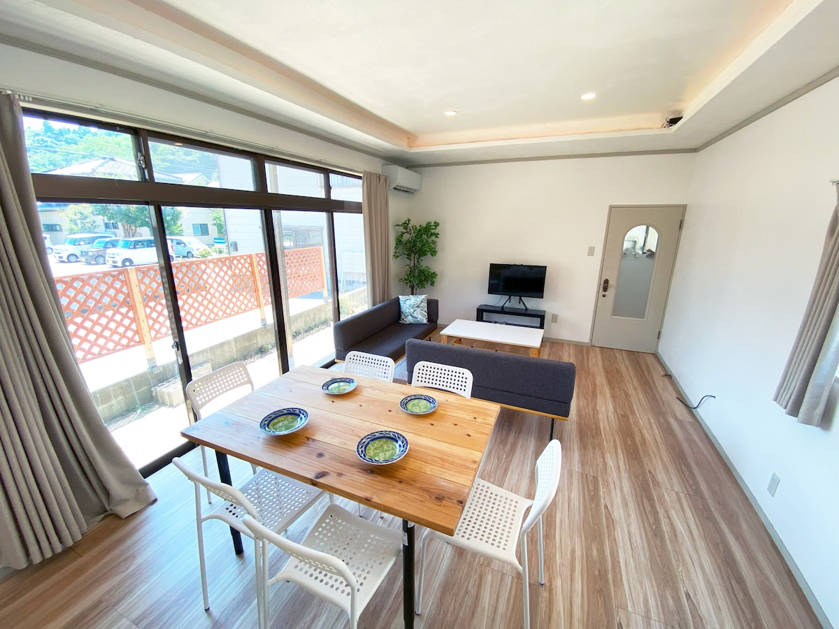/ 「仙台駅」から車で約10分! 地下鉄東西線「国際センター駅」徒歩で約10分 \ ☆仙台市青葉区の閑静な住宅街に佇む木造2階建てで、ゆったりと寛げる空間をご提供いたします。 ☆ご家族やグループでのご旅行に最適な25㎡の広々リビングダイニング、3つの寝室がある110㎡の3LDKで、最大9名様までご宿泊いただけます。 ☆お子様連れのお客様も歓迎いたします。 ☆LGBTQ+フレンドリー ☆築57年の趣きを残しつつも、快適にお過ごしいただけるよう整えられた室内。 ☆受験・進学下見での滞在にも最適です。 ▶︎当宿はお車でお越しいただくのが最も便利 です。JR「仙台」駅西口からタクシーで日中約1,600円ほどです。夜は割増料金が発生します。 ▶︎最寄の駅やバス停やコンビニからは坂道や階段を通る必要があり、徒歩約10〜15分ほどかかります。近くにスーパーはありません。 ▶︎仙台駅周辺で食料品や必要なものを買ってから当宿にいらっしゃることをおすすめします。 ▶︎仙台市中心部の便利さをご希望される方のご宿泊はご遠慮ください。 ご了承いただける方のみご予約ください。