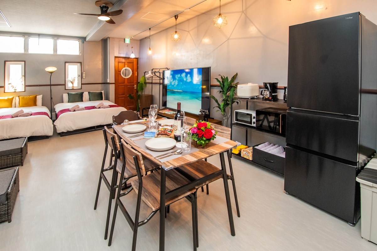 5 Autominuten vom Flughafen Naha entfernt, hat es eine natürliche und freundliche Atmosphäre. Das Flugzeug und der Sonnenuntergang sind vom Zimmer aus sichtbar. 10 Minuten zum Naminoue Beach, 8 Minuten zum Chura SUN Beach, 25 Minuten zum Gangara Valley und Cave Cafe und 27 Minuten zum Ocean Castle Country Club mit dem Auto. Es gibt jede Menge Aktivitäten, die du genießen kannst. Lebensmittelgeschäfte,Supermärkte und Restaurants sind in der Nähe. Wir sind besorgt über Hygiene, um einen sicheren Aufenthalt zu gewährleisten. Wir freuen uns auf deinen Aufenthalt!
